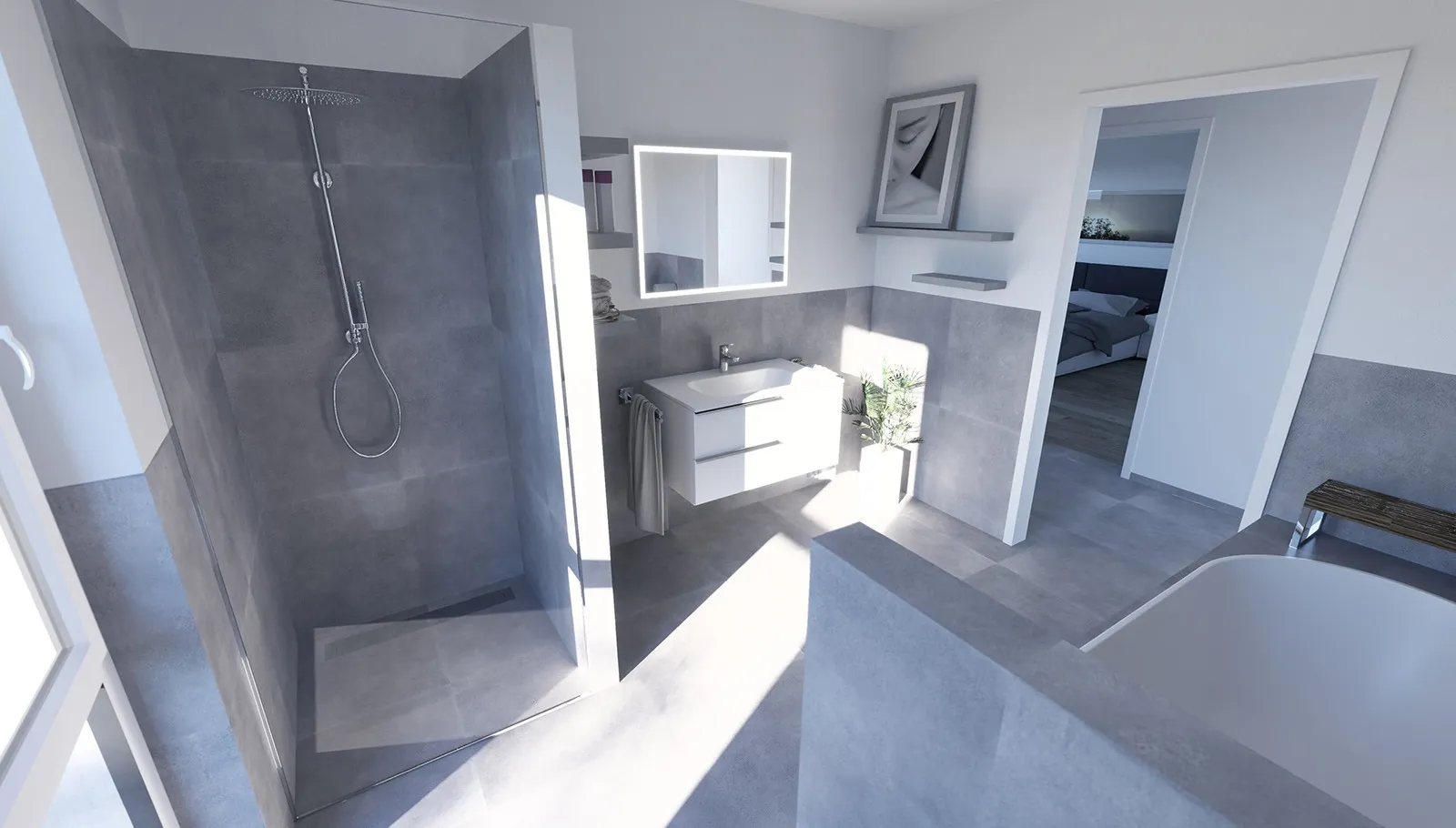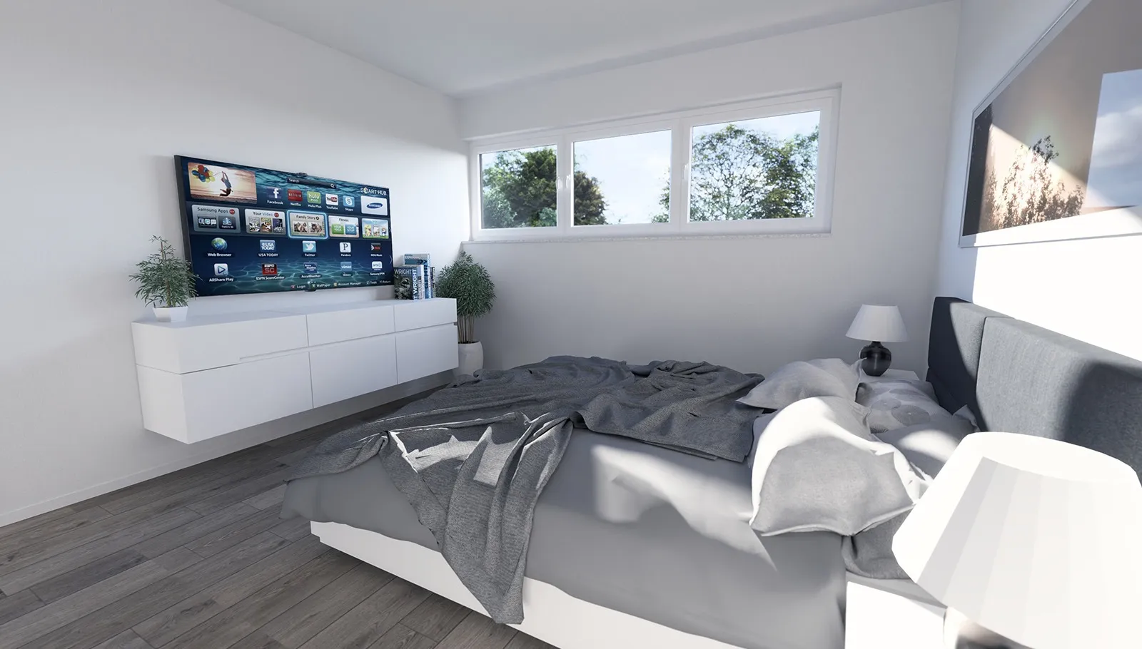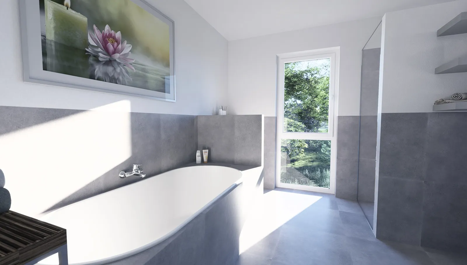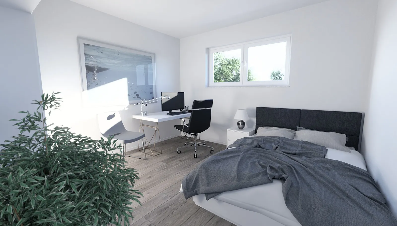 Manchmal ist das Einfache das Besondere. Die kompakte Bauweise mit ihren klaren Linien ist modern, zeitlos und trotzdem auf der Höhe der Zeit. Große Glasflächen und moderne Fenstergestaltung sorgen für Tageslicht durchflutete Räume, die gerade im Erdgeschoss viel Platz für individuelle Wohnträume lassen. Wie zum Beispiel eine moderne Küche mit Insellösung.