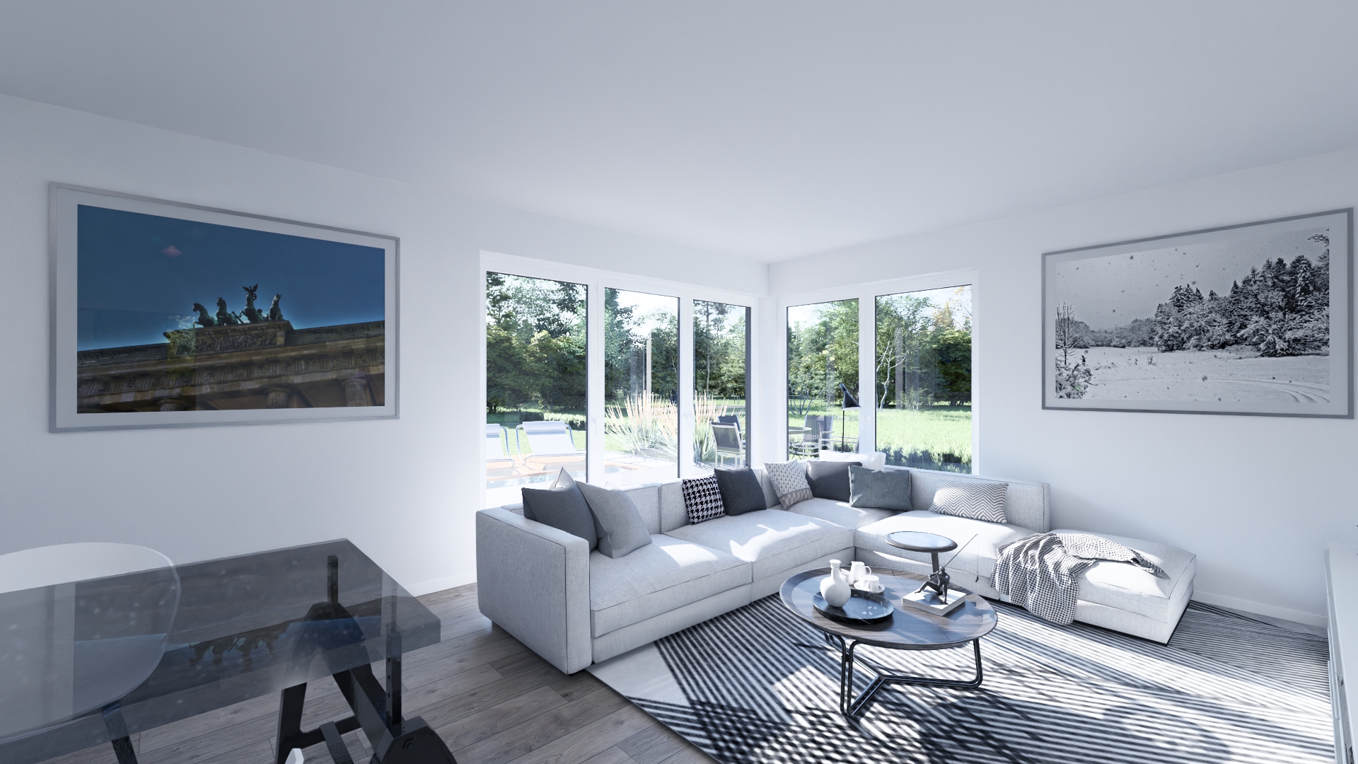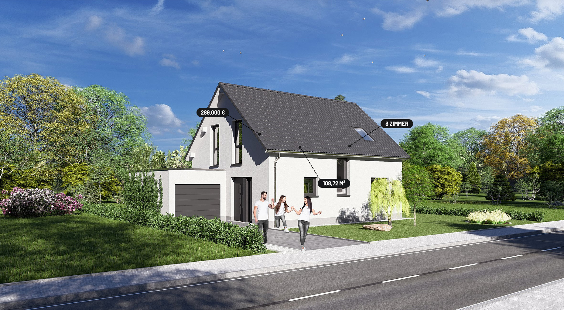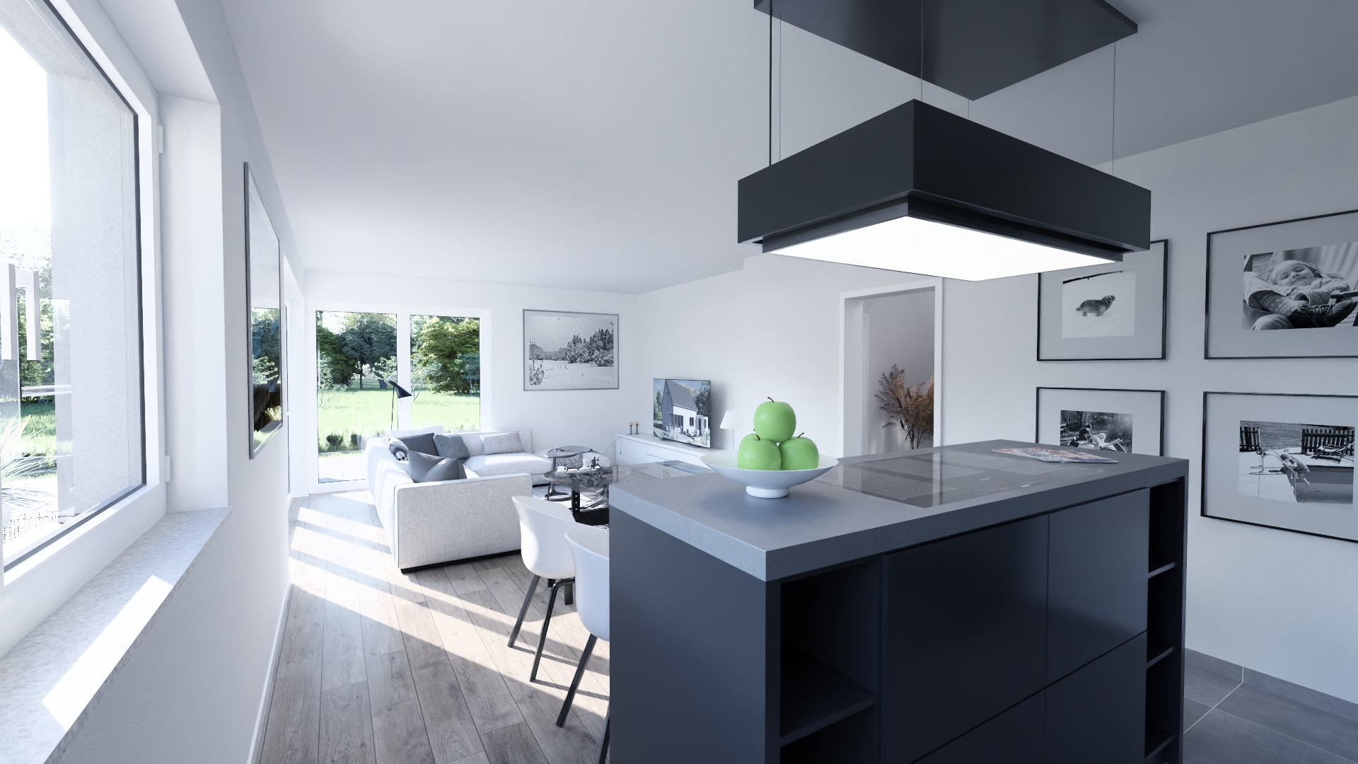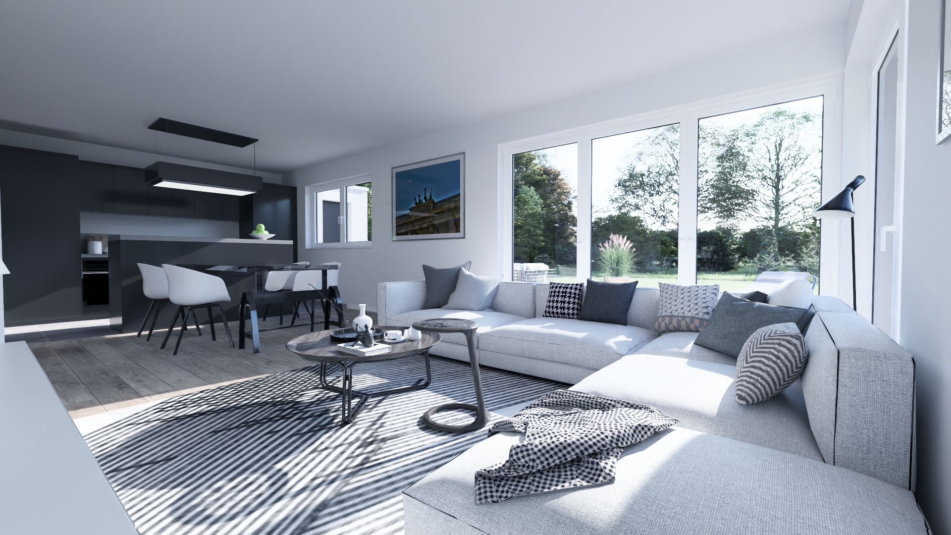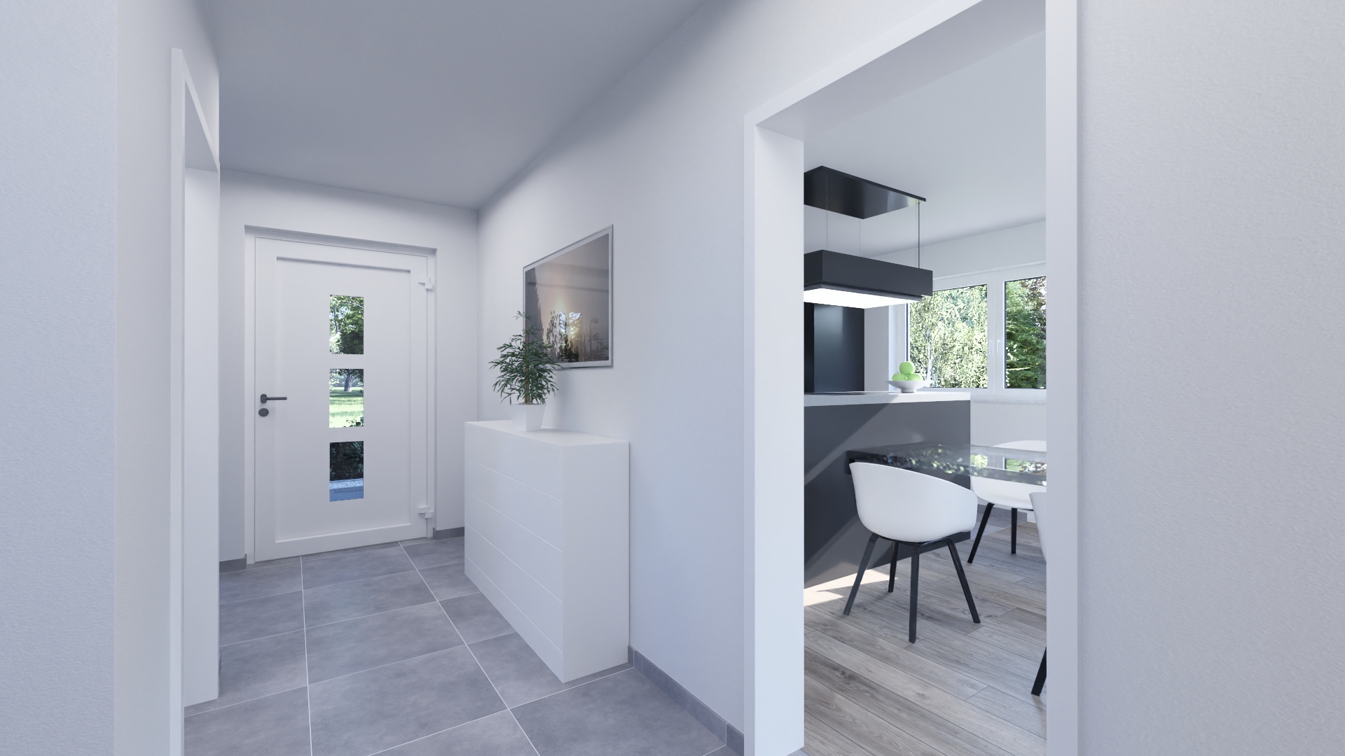 Das „Highlight“, unsere Kompakt-Klasse, ideal für kleinere Grundstücke. Auch bei geringem Platzbedarf erleben Sie Individualität und Chic. Große Fenster spenden viel Licht, die moderne Eckverglasung im Wohn- und Essbereich bietet direkten Zutritt in Ihren Garten. Die an den Wohnbereich angeschlossene Küche lädt ein zum gemeinsamen Kochen und Verweilen mit Familie und Freunden.
