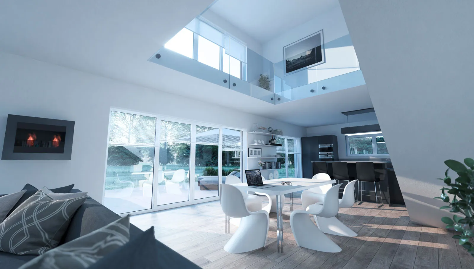 Sie genießen die Erlebnisküche mit freiem Blick durch die große Glasfassade in den Garten, oder die offene Galerie mit Rundgang im OG. Und Sie wissen, dass „Maxi“ genau die richtige Wahl für Ihre hohen Ansprüche ist.
