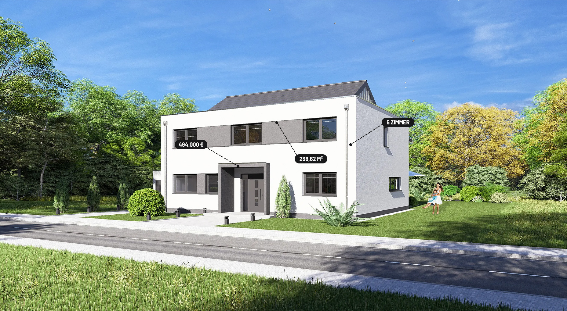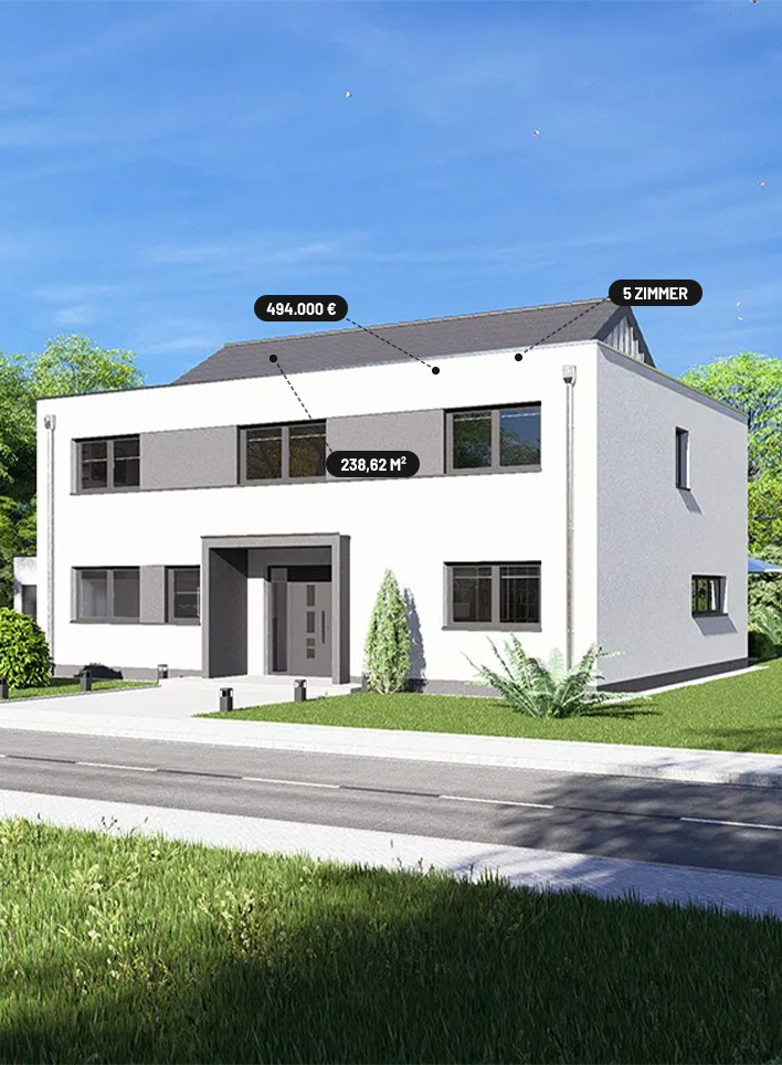 Unser zweitgrößtes Typenhaus „Maxi“ steht für maximale Individualität und maximalen Wohnkomfort. Sie entscheiden über die Form des Daches (Flach-, Walm- oder Satteldach). Über die Nutzung der insgesamt sieben Zimmer, die genügend Platz für Ihre Familienplanung lassen. Dabei lernen Sie garantiert die beiden Bäder und die Gästetoilette zu schätzen.