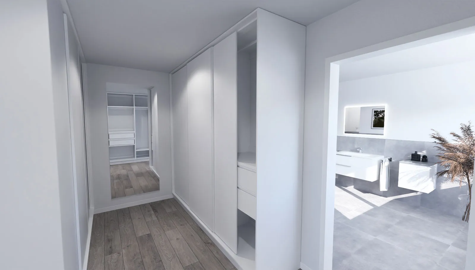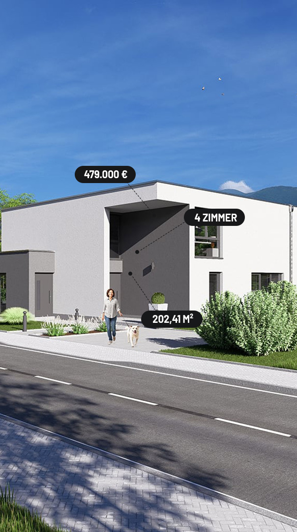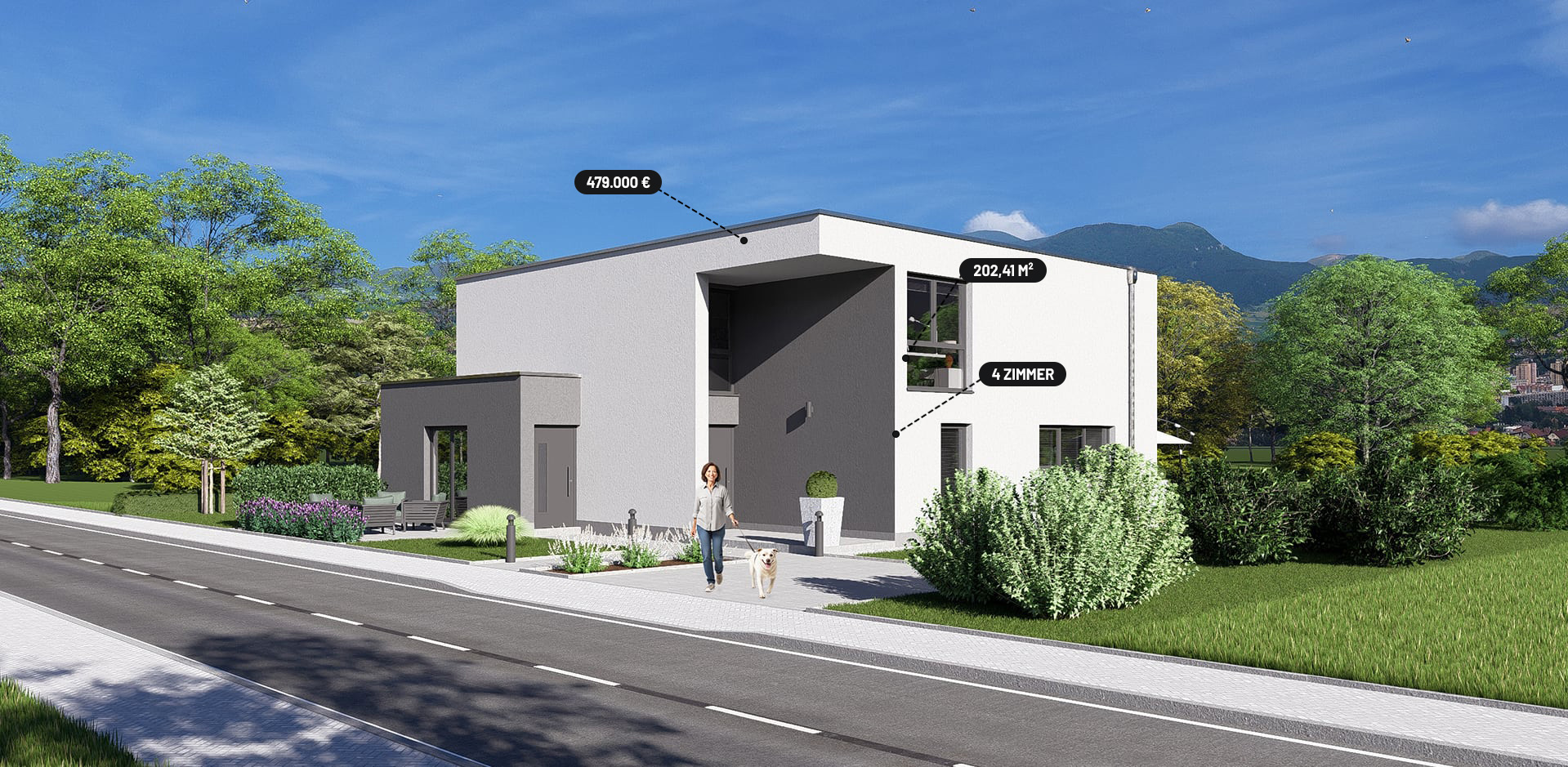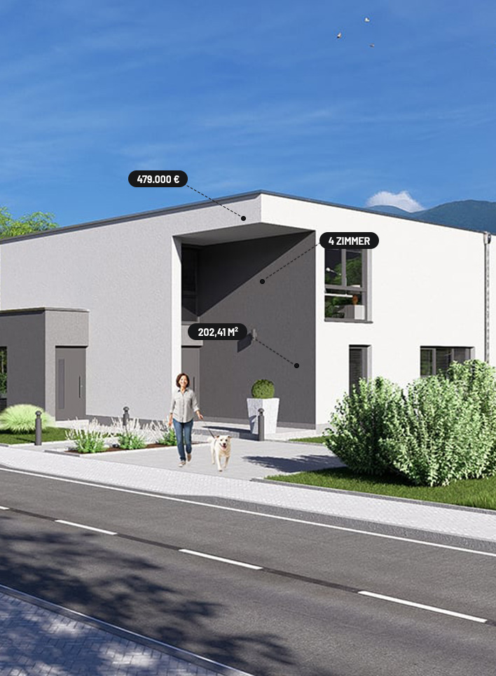 Unser Traumlaux „MODERN ART“ mit separater Einliegerwohnung verbindet stilvolles Design mit praktischer Funktionalität. Mit 4 Zimmern, einer modernen Küche, einer separaten Ankleide und großzügigem Bad bietet es viel Raum für individuelle Gestaltung. Die integrierte Einliegerwohnung ist ideal für eine Vermietung oder für Freunde und Familie.