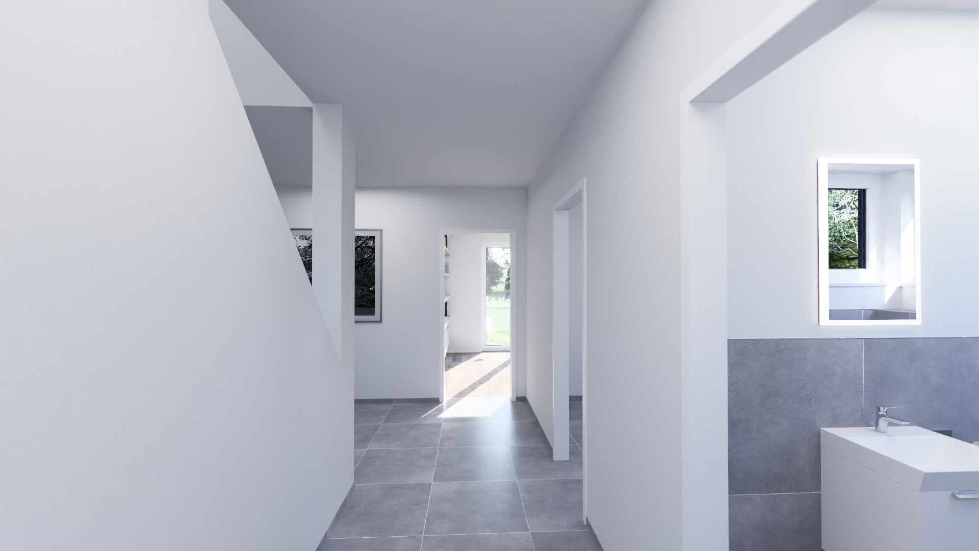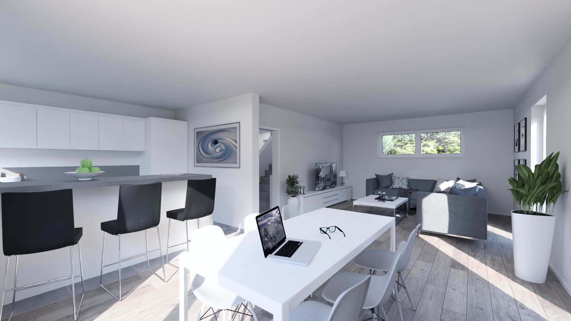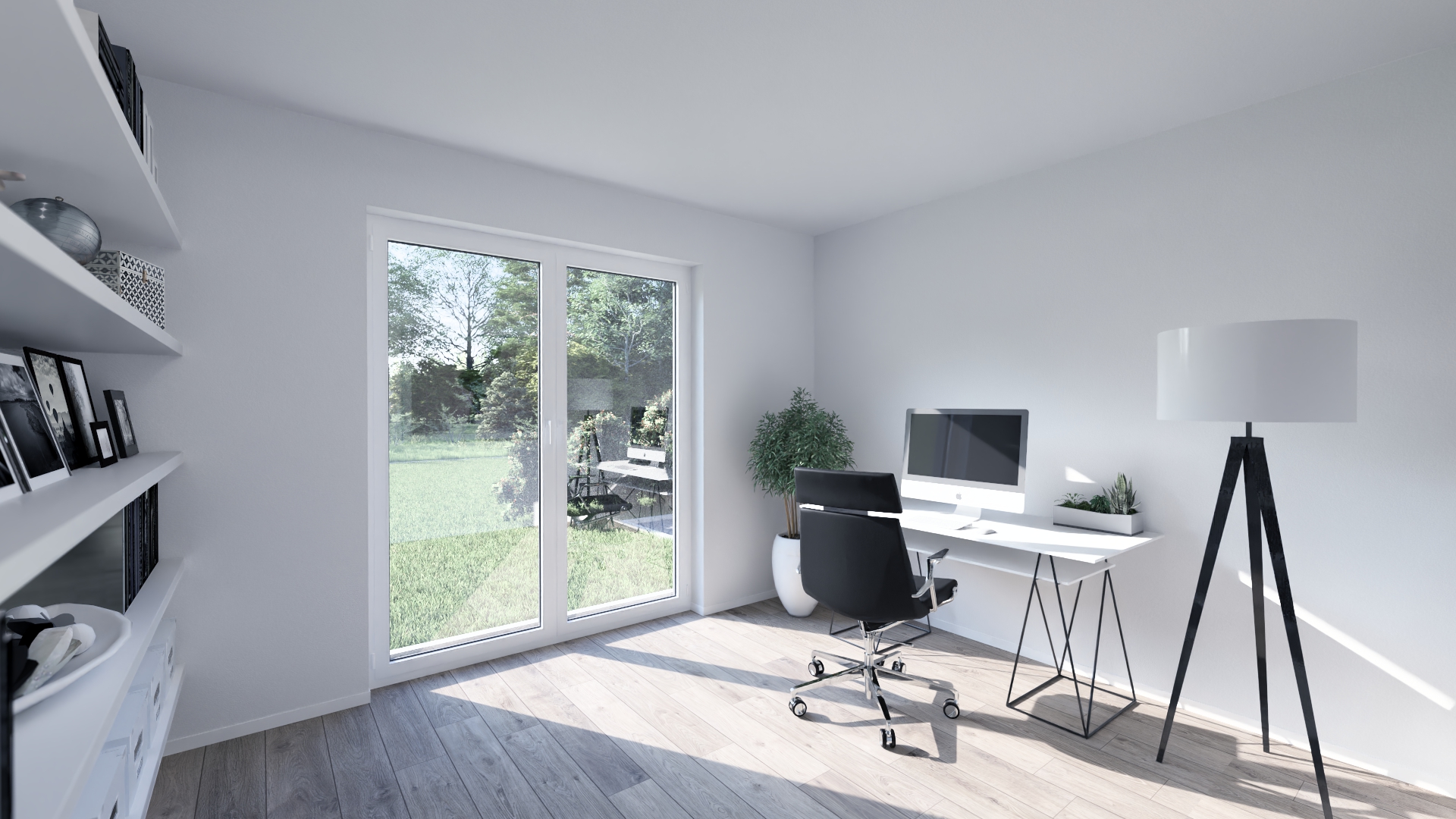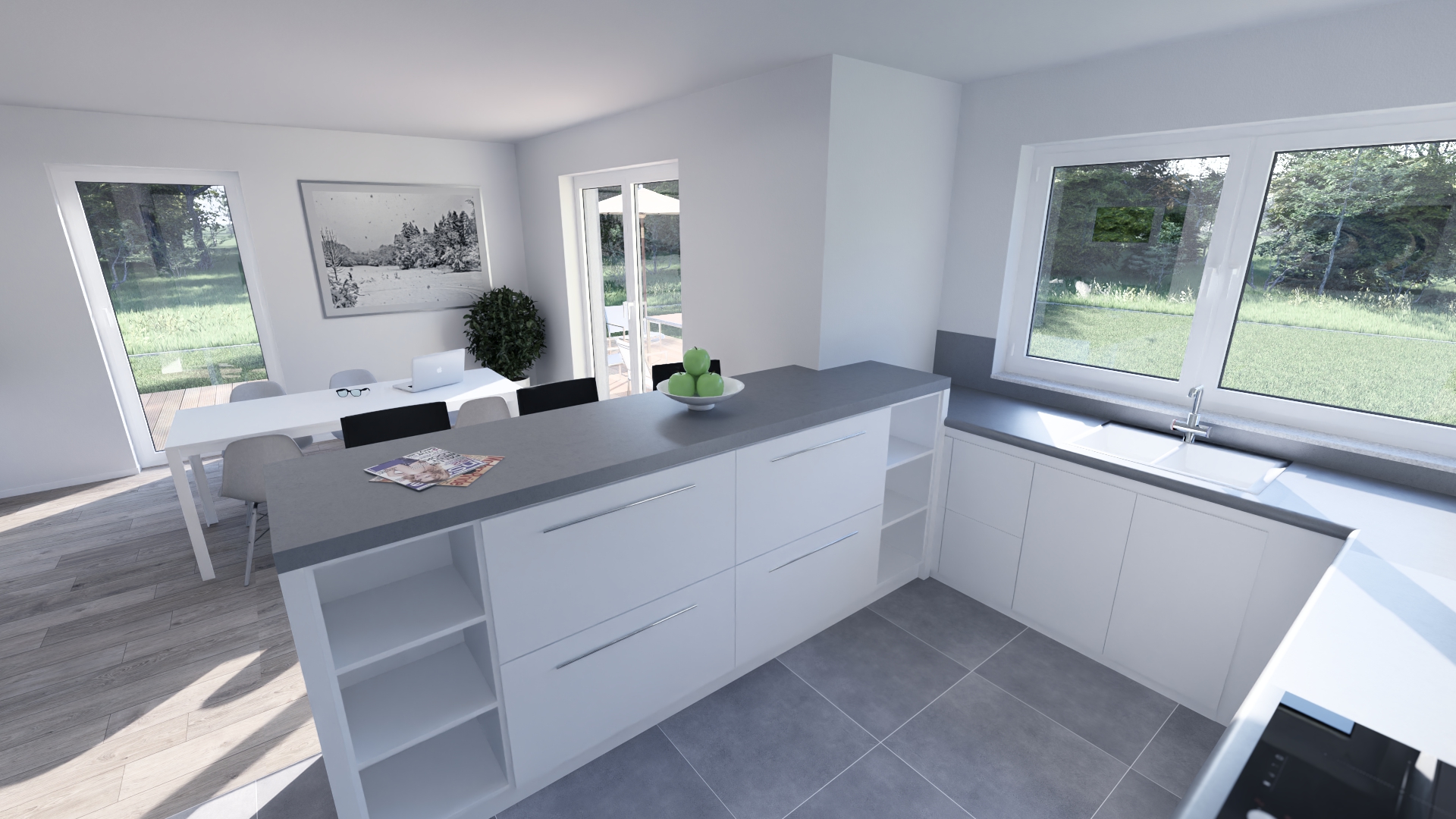 In den Erker eingebunden bildet die Küche das Zentrum des Familienlebens. Vom Wohn- und Essbereich aus blicken Sie durch die bodentiefen Fenster in den Garten. Auch im Dachgeschoss sorgen vier bodentiefe Fenster für strahlende Helligkeit.