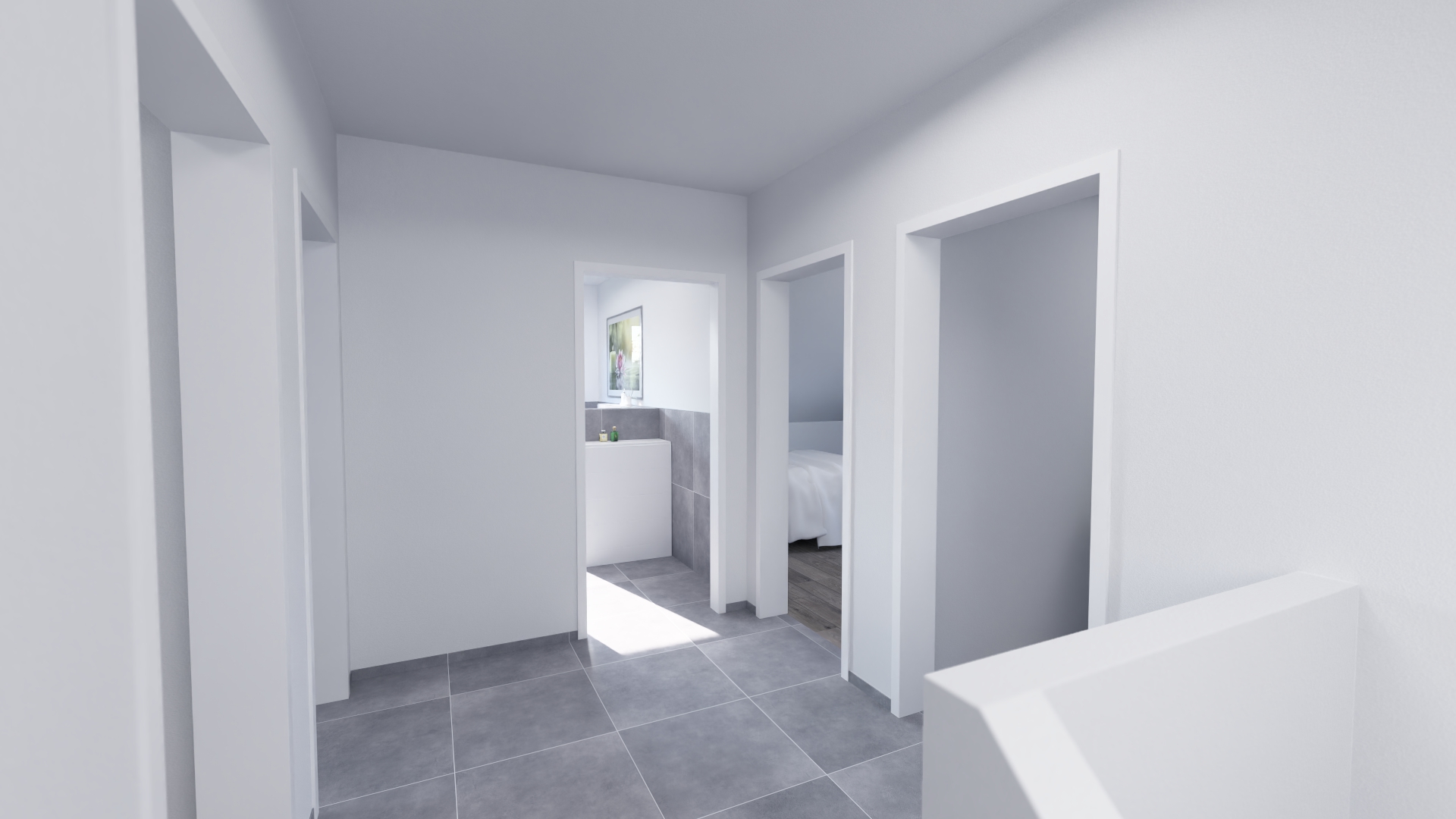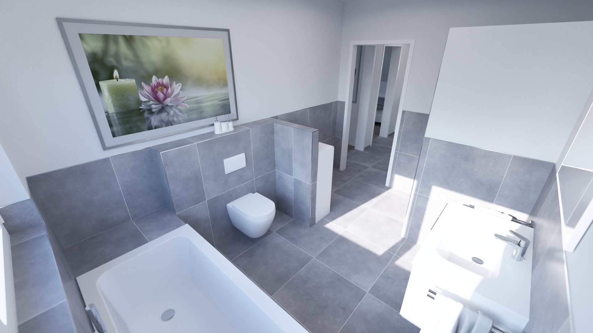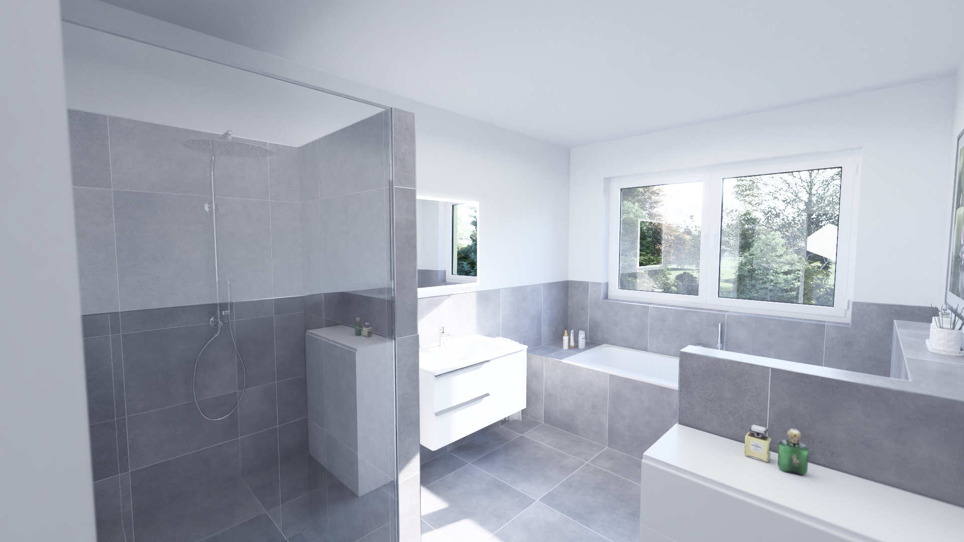 Ein weiteres Highlight ist das in den oberen Erker eingebaute Bad. Durch das große Fenster über der Badewanne blicken Sie in die Ferne und vergessen entspannt den Alltag.