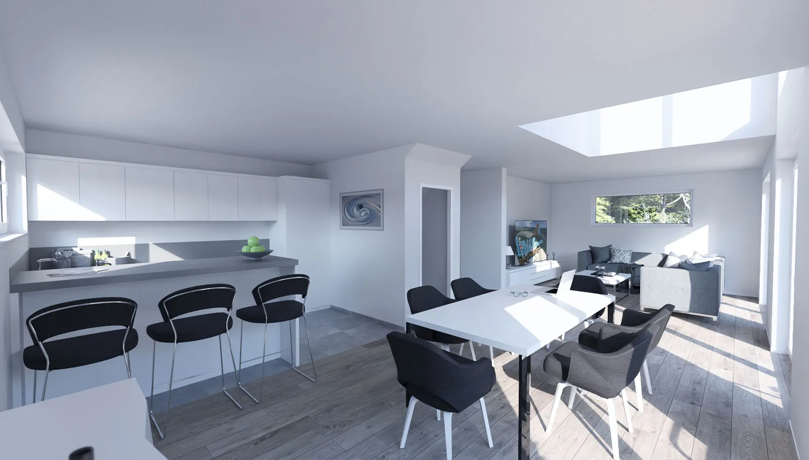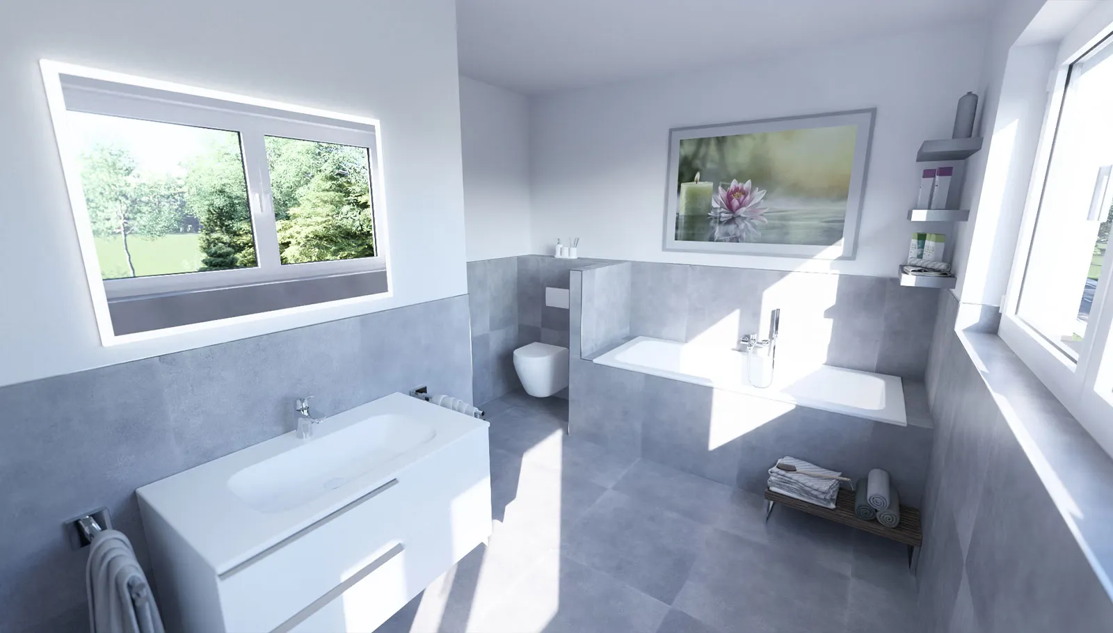 Außen modern, innen mit klassischer Raumaufteilung – so ist unser Traumlaux „Nexus“. Dafür sorgt schon das großzügige Raumangebot von fünf Zimmern, dazu Küche, Bad und Gäste-WC. Die offene Küche ist mit dem Wohn-Essbereich verbunden, aber durch die geschickte Über- Eck-Lösung optisch getrennt. Die Ankleide neben dem Elternschlafzimmer, ein Abstellraum bei der Küche und der Hauswirtschaftsraum verbinden das Praktische mit dem Wohnlichen. Die lichtdurchflutete Galerie gibt Ihren neuen vier Wänden den exklusiven Touch.