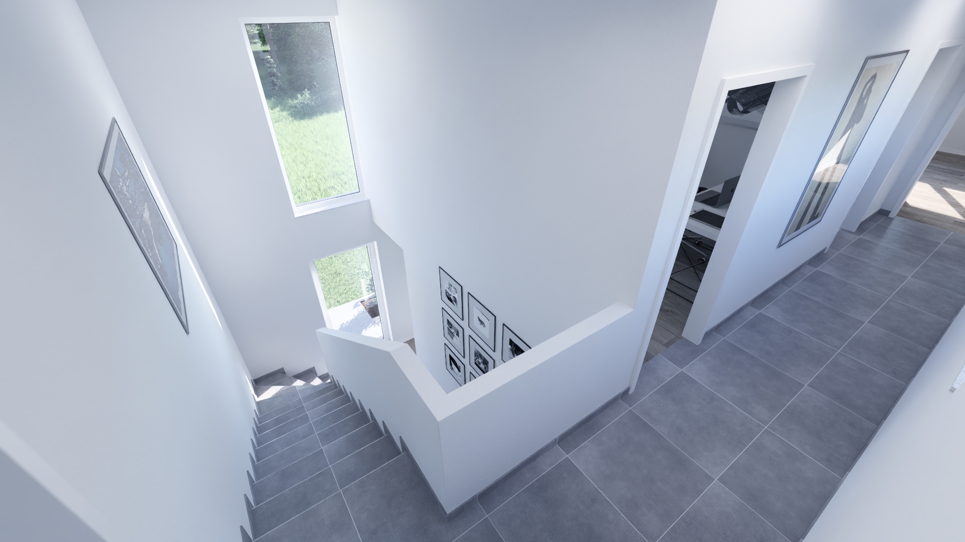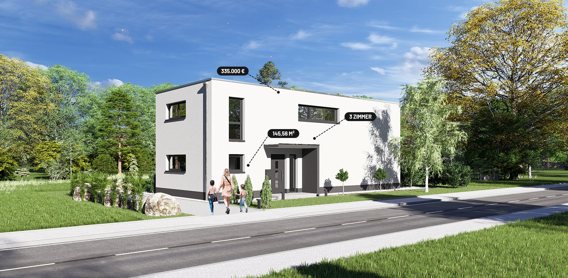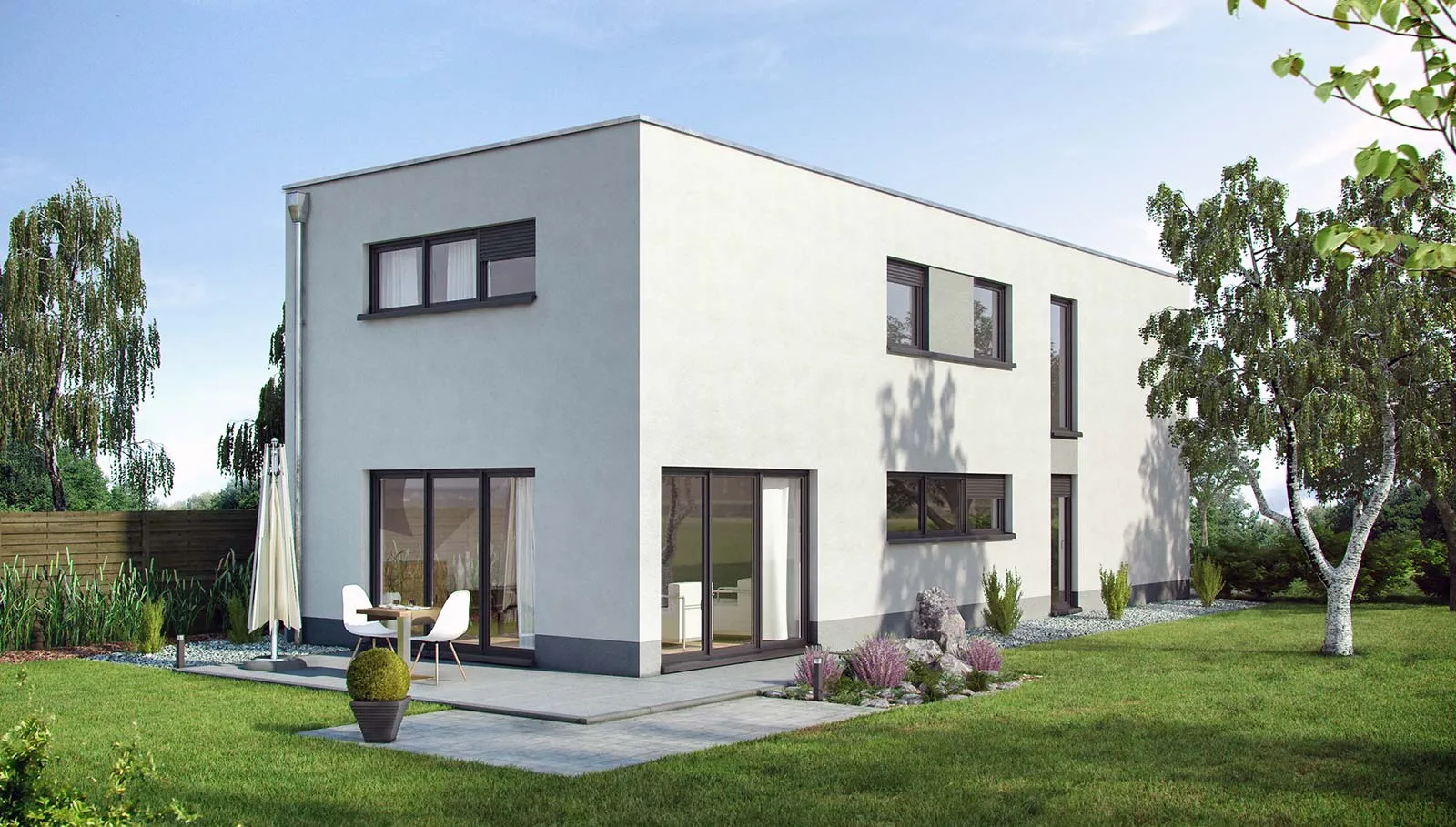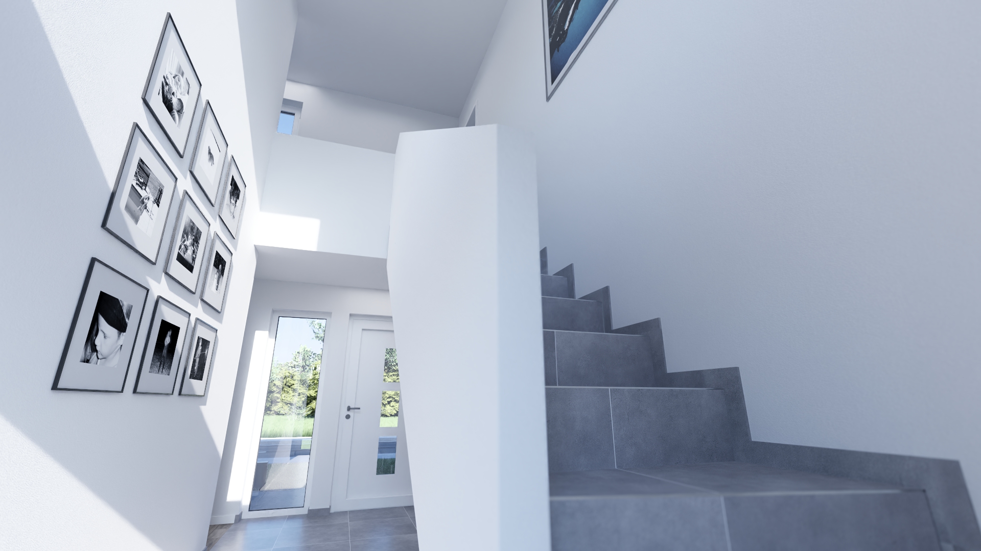 Slim wird Sie überraschen. Die moderne Architektur im Bauhausstil entfaltet erst im Inneren Ihre wahre Größe. Dieser Entwurf ist bis ins kleinste Detail durchdacht und verschwendet keinen Zentimeter Wohnraum. Lichtdurchflutete Räume und ein offenes Erdgeschoss, das mit der Kombination aus Küche, Ess- und Wohnraum einen ganz persönlichen Lebensmittelpunkt schafft.
