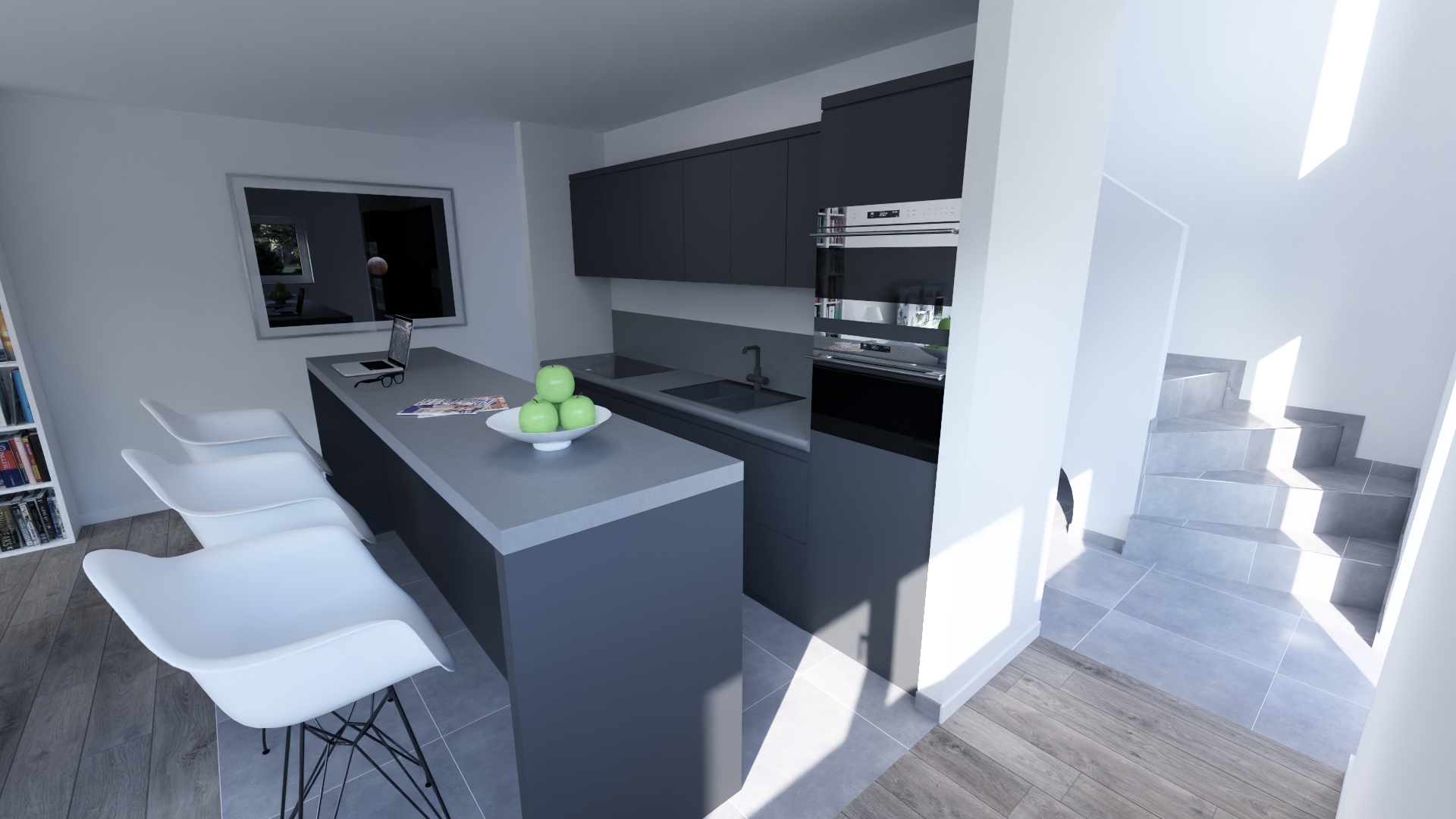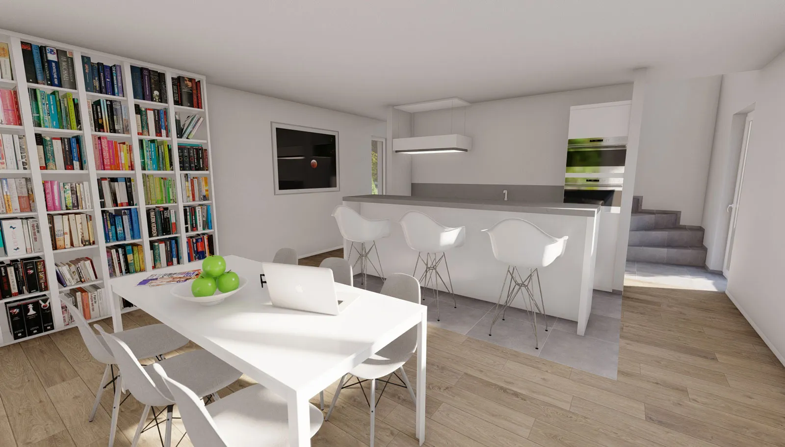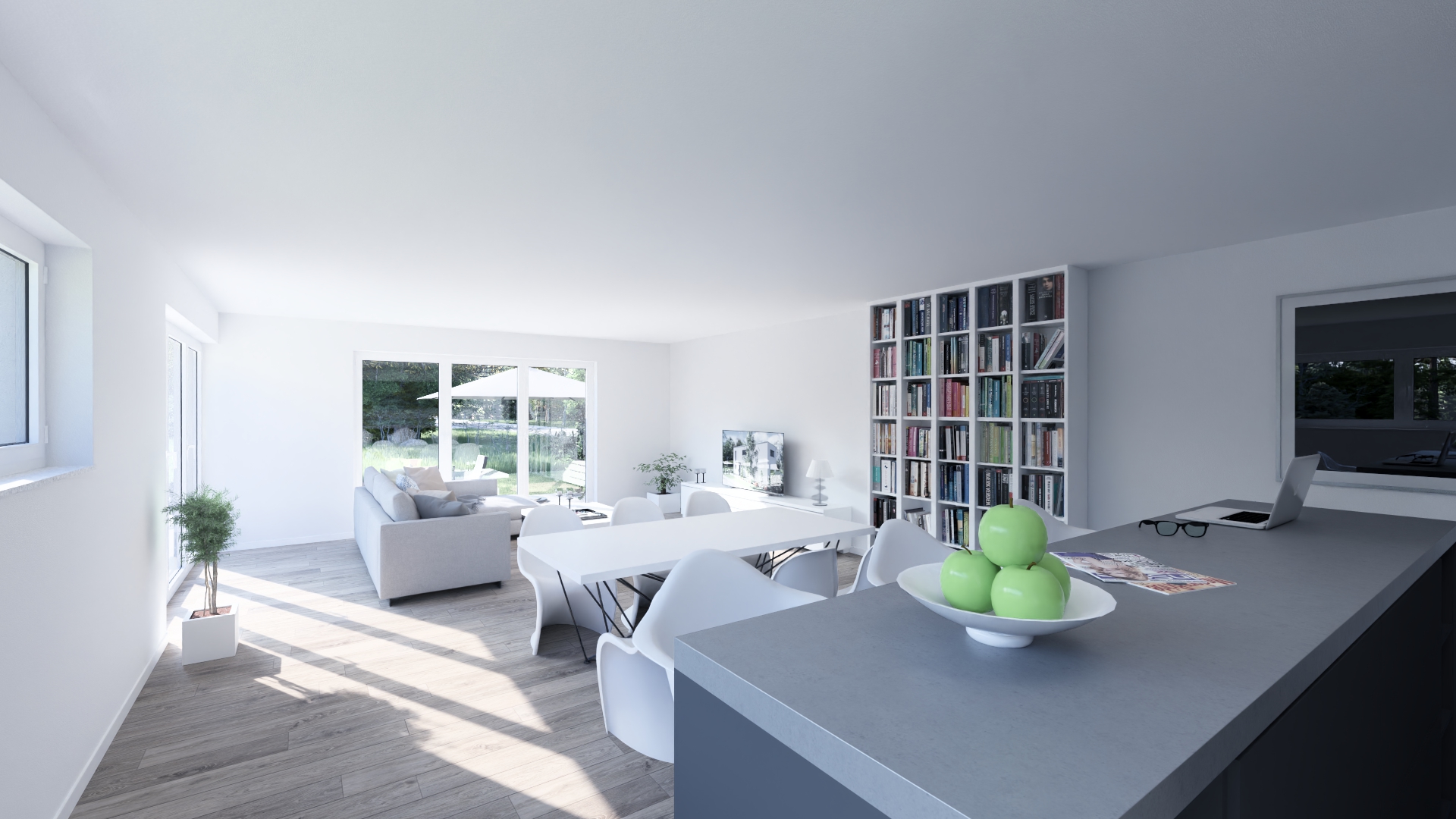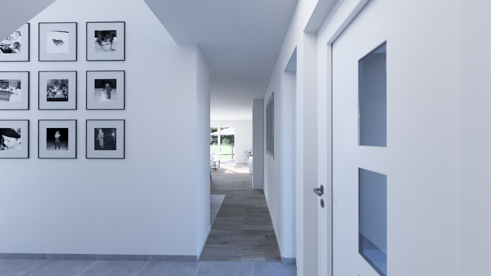 Slim wird Sie überraschen. Die moderne Architektur im Bauhausstil entfaltet erst im Inneren Ihre wahre Größe. Dieser Entwurf ist bis ins kleinste Detail durchdacht und verschwendet keinen Zentimeter Wohnraum. Lichtdurchflutete Räume und ein offenes Erdgeschoss, das mit der Kombination aus Küche, Ess- und Wohnraum einen ganz persönlichen Lebensmittelpunkt schafft.
