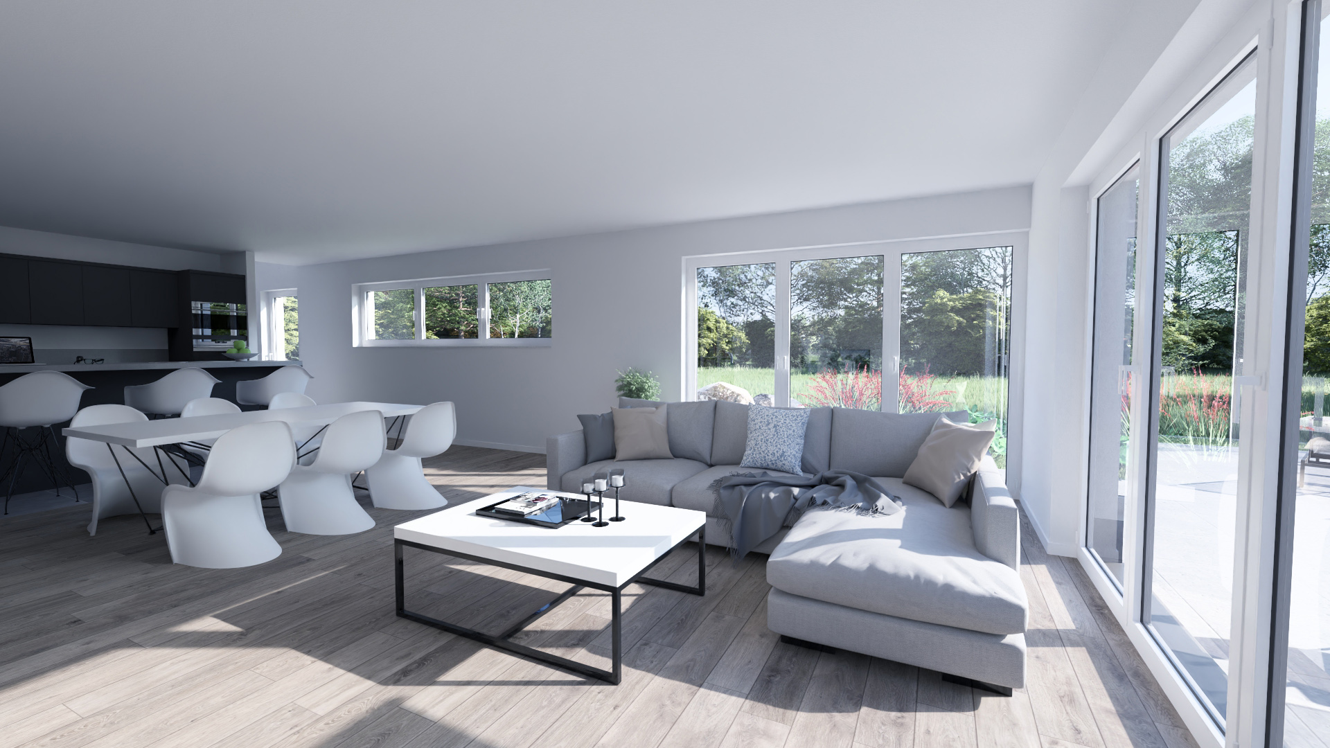 Durch die große Terrasse sind es immer nur wenige Schritte in die Natur. Kaum ein anderes Modell macht es so leicht, Ihre individuellen Wünsche an Raum und hochwertiger Ausstattung einfließen zu lassen.