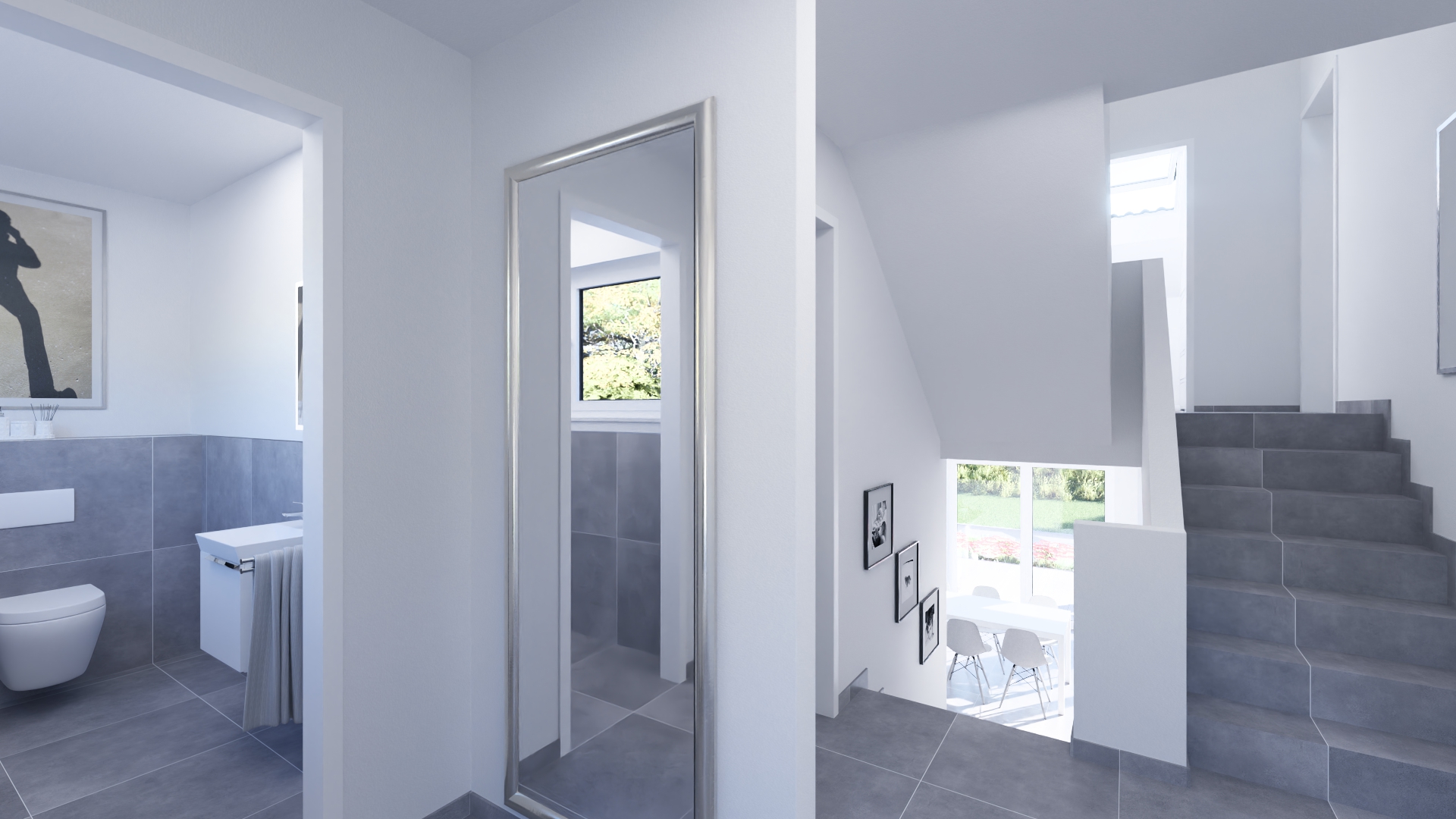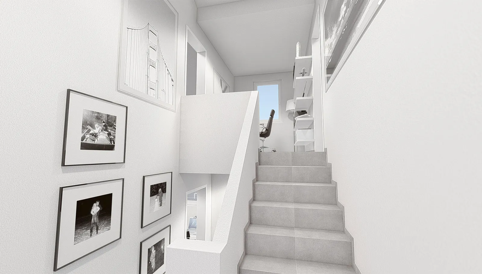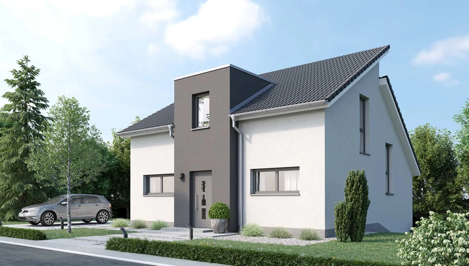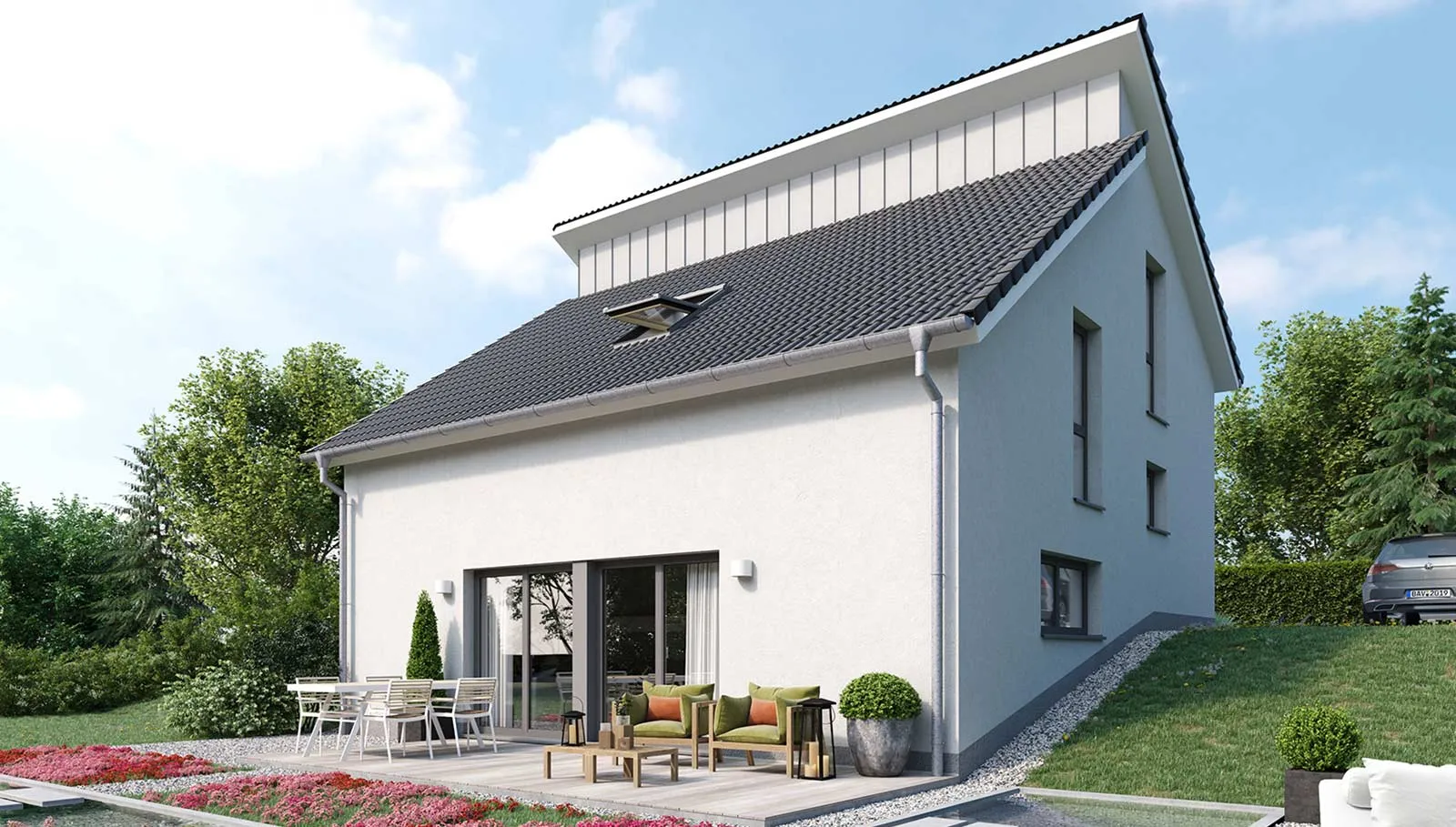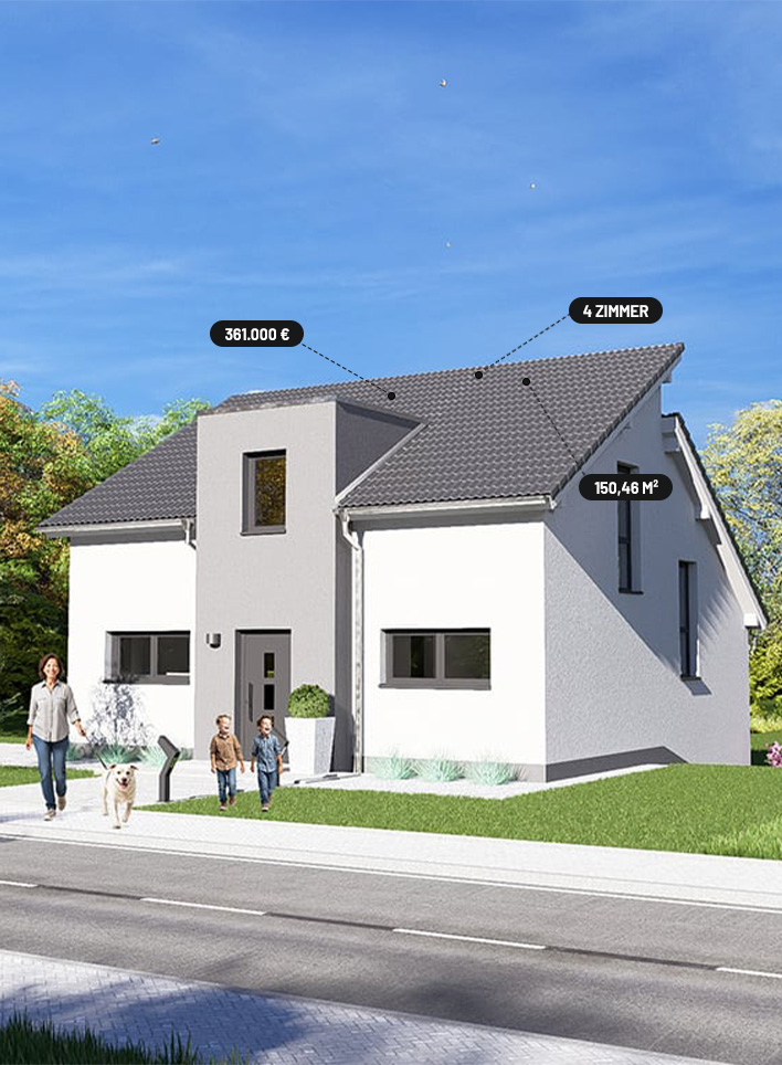 Die Split-Level-Architektur läßt den Wunsch vom Wohnen auf verschiedenen Ebenen wahr werden. Das Kernstück des Hauses bildet die Treppe, wodurch ein separates Treppenhaus entfällt. Der hohe Kniestock, eine optionale Teilunterkellerung und die große Gaube mit Spielflur im OG schenken Ihnen genug Raum, Ihre Vorstellungen von den eigenen vier Wänden zu verwirklichen.