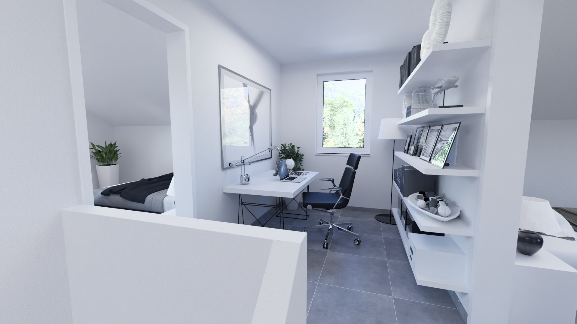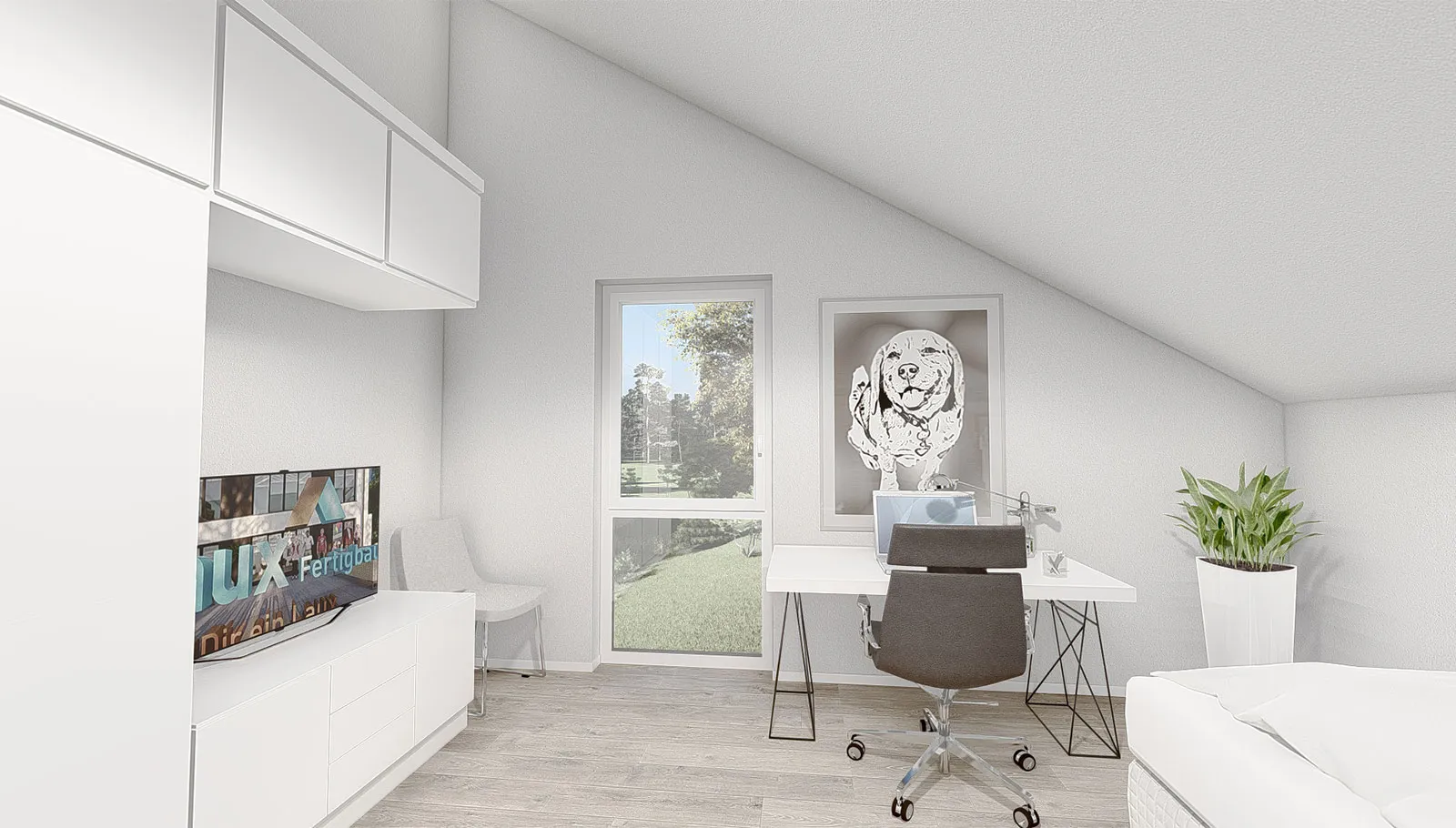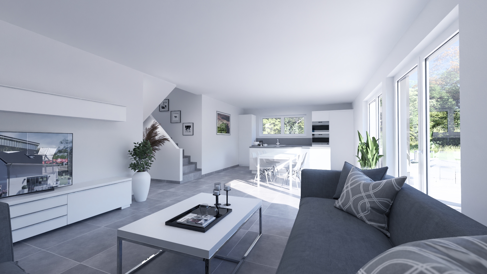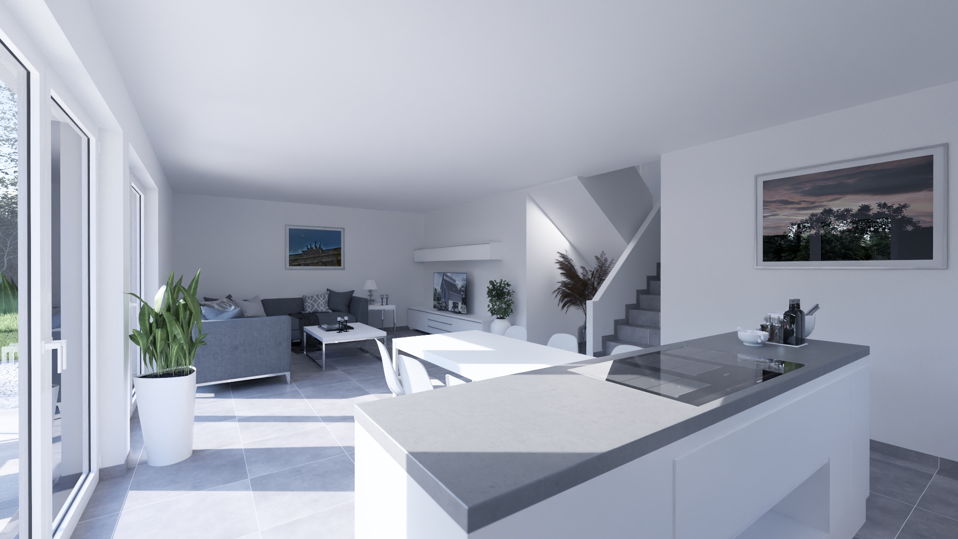 Die Split-Level-Architektur läßt den Wunsch vom Wohnen auf verschiedenen Ebenen wahr werden. Das Kernstück des Hauses bildet die Treppe, wodurch ein separates Treppenhaus entfällt. Der hohe Kniestock, eine optionale Teilunterkellerung und die große Gaube mit Spielflur im OG schenken Ihnen genug Raum, Ihre Vorstellungen von den eigenen vier Wänden zu verwirklichen.