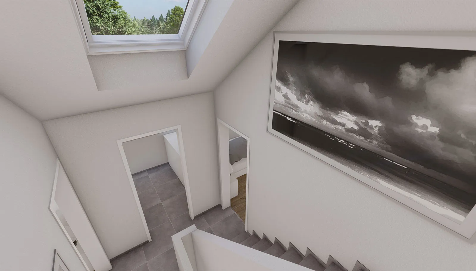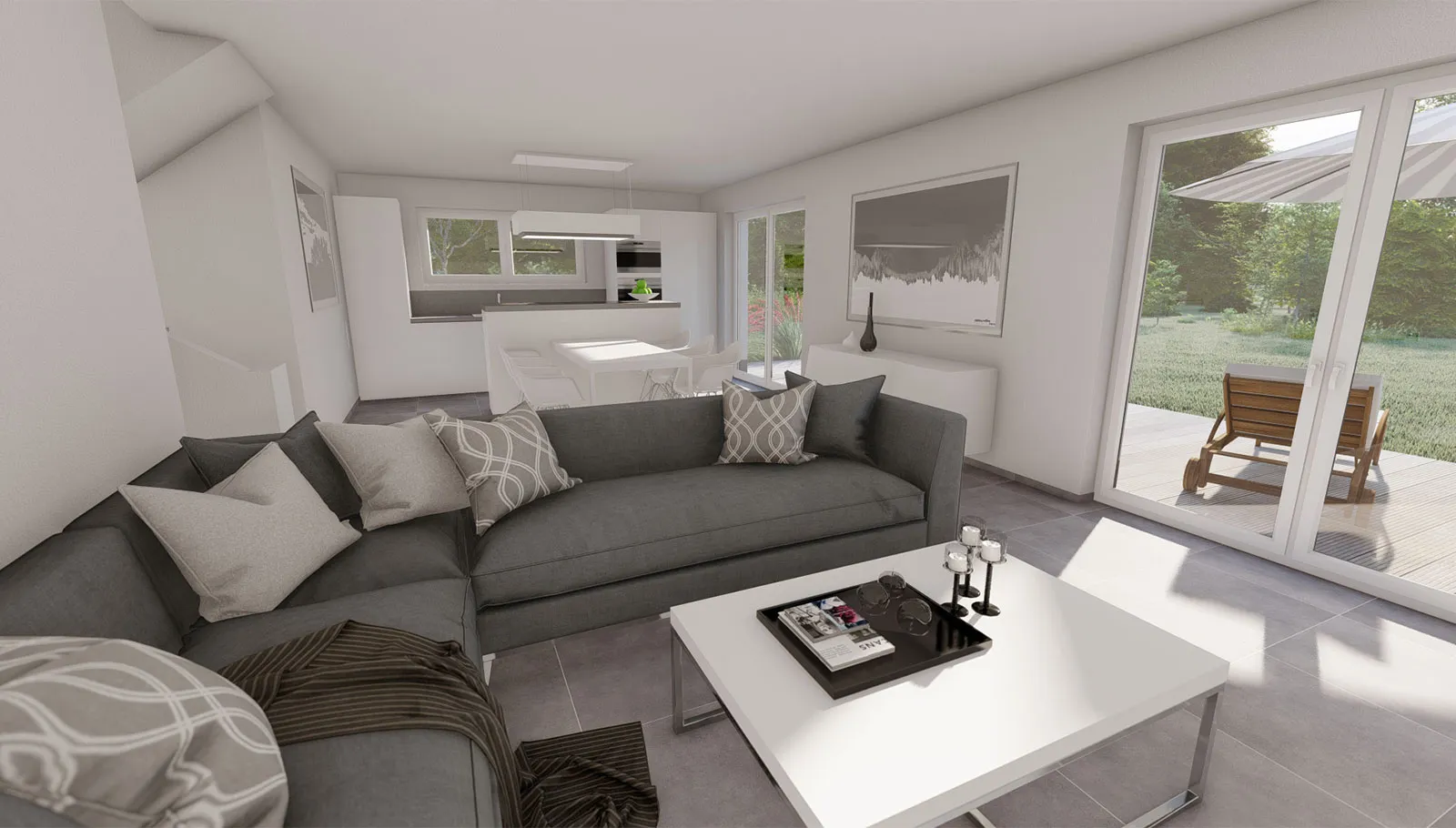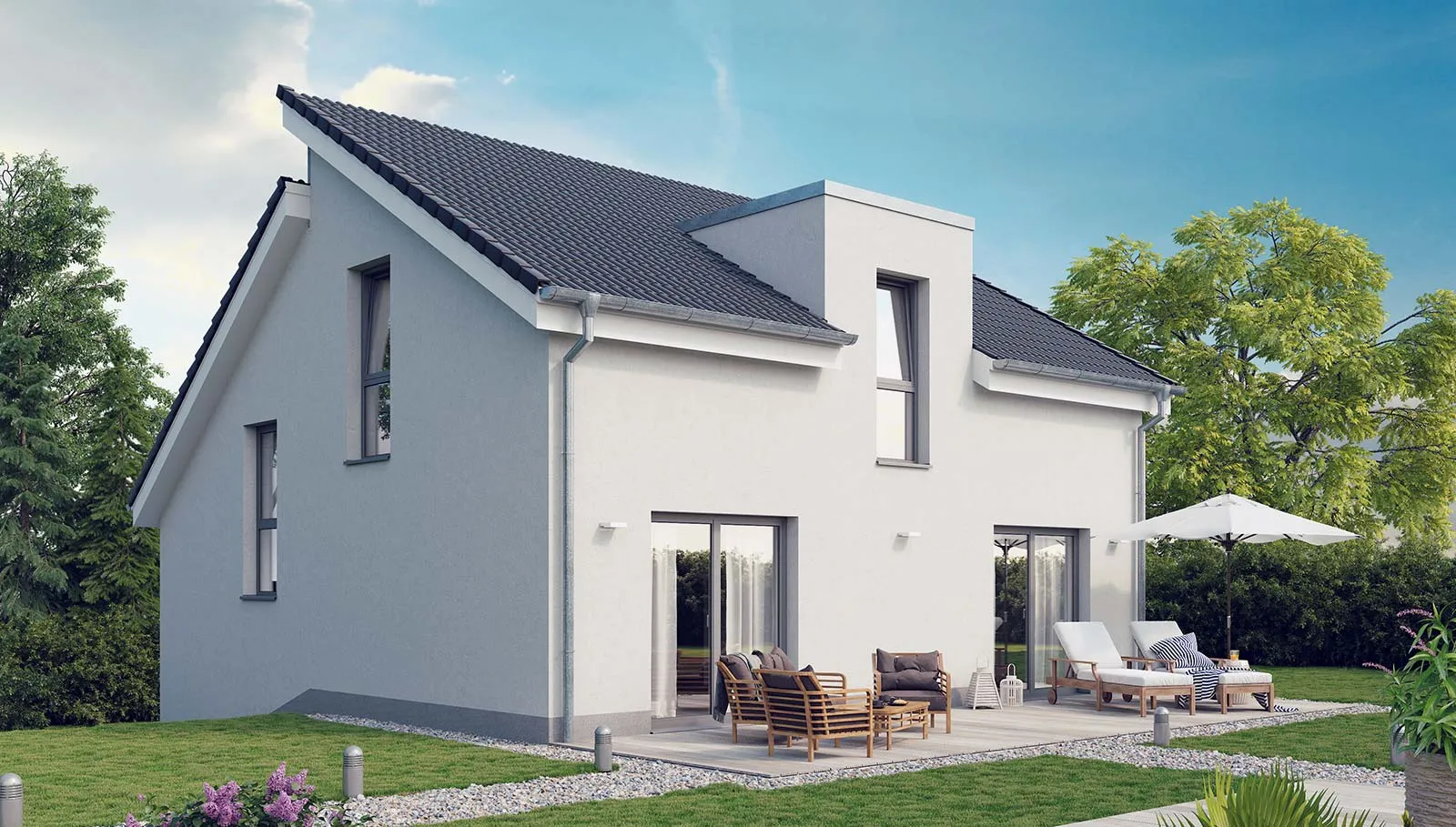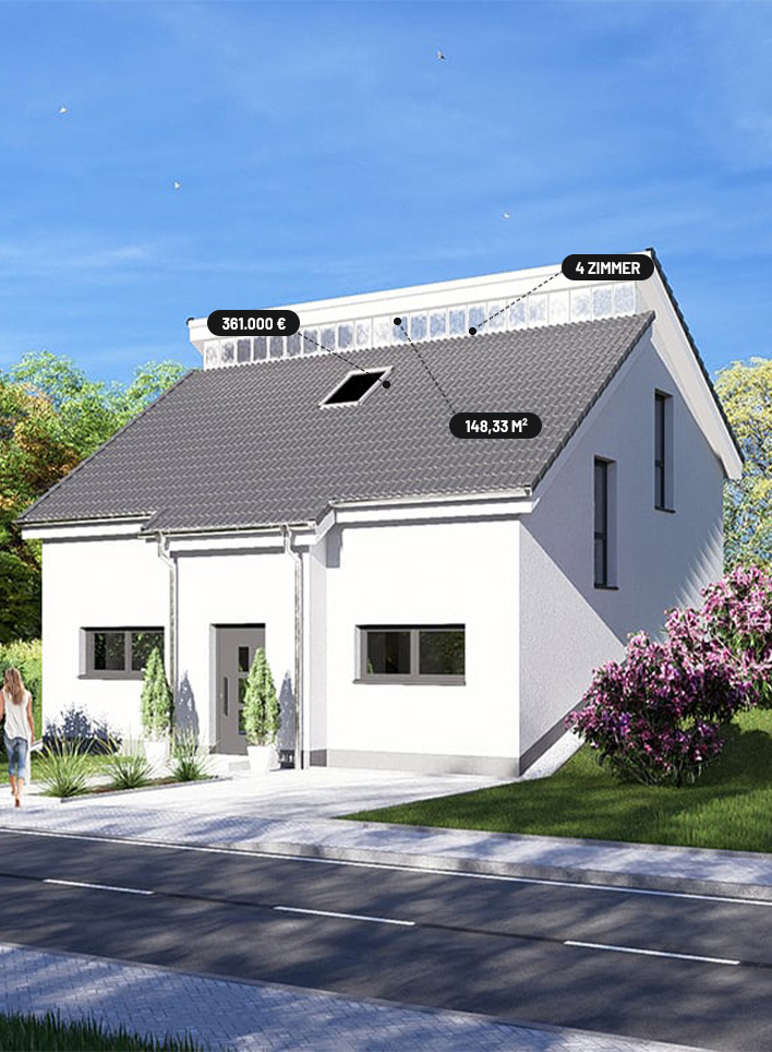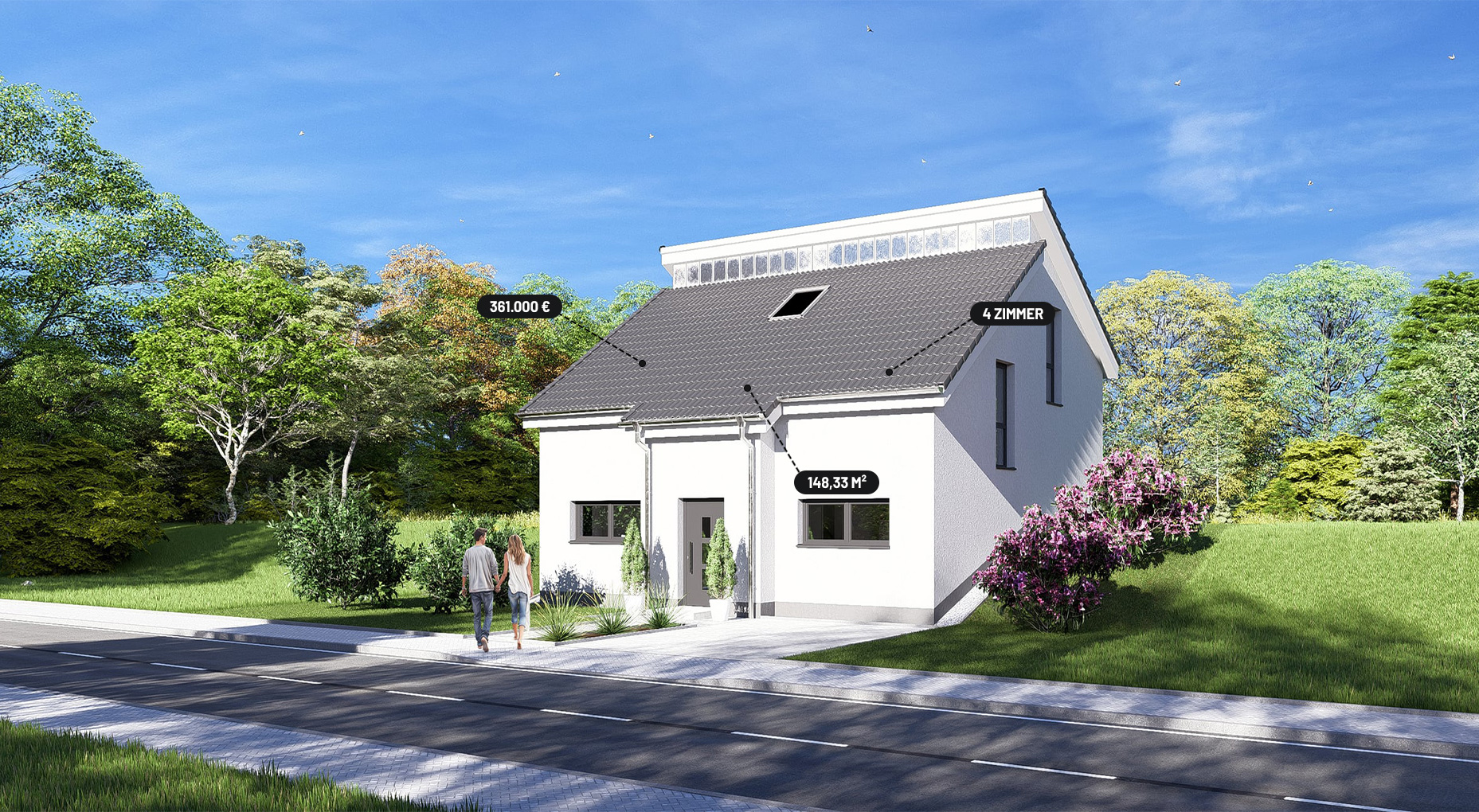 Die Split-Level-Architektur läßt den Wunsch vom Wohnen auf verschiedenen Ebenen wahr werden. Das Kernstück des Hauses bildet die Treppe, wodurch ein separates Treppenhaus entfällt. Der hohe Kniestock, eine optionale Teilunterkellerung und die große Gaube im OG schenken Ihnen genug Raum, Ihre Vorstellungen von den eigenen vier Wänden zu verwirklichen.