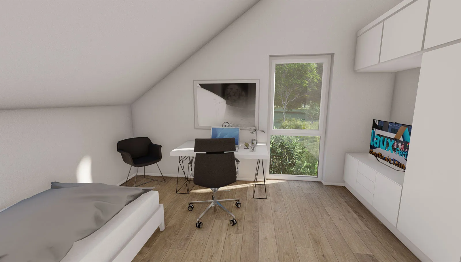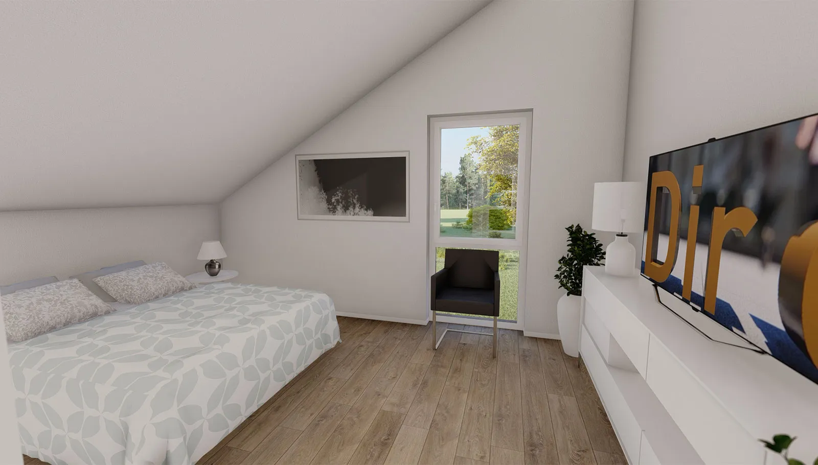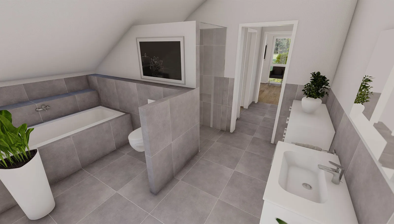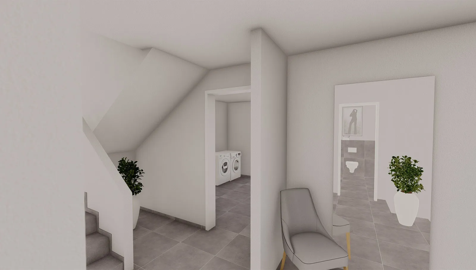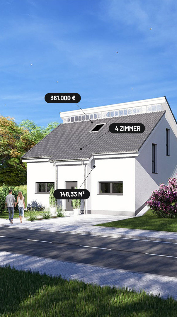 Die Split-Level-Architektur läßt den Wunsch vom Wohnen auf verschiedenen Ebenen wahr werden. Das Kernstück des Hauses bildet die Treppe, wodurch ein separates Treppenhaus entfällt. Der hohe Kniestock, eine optionale Teilunterkellerung und die große Gaube im OG schenken Ihnen genug Raum, Ihre Vorstellungen von den eigenen vier Wänden zu verwirklichen.