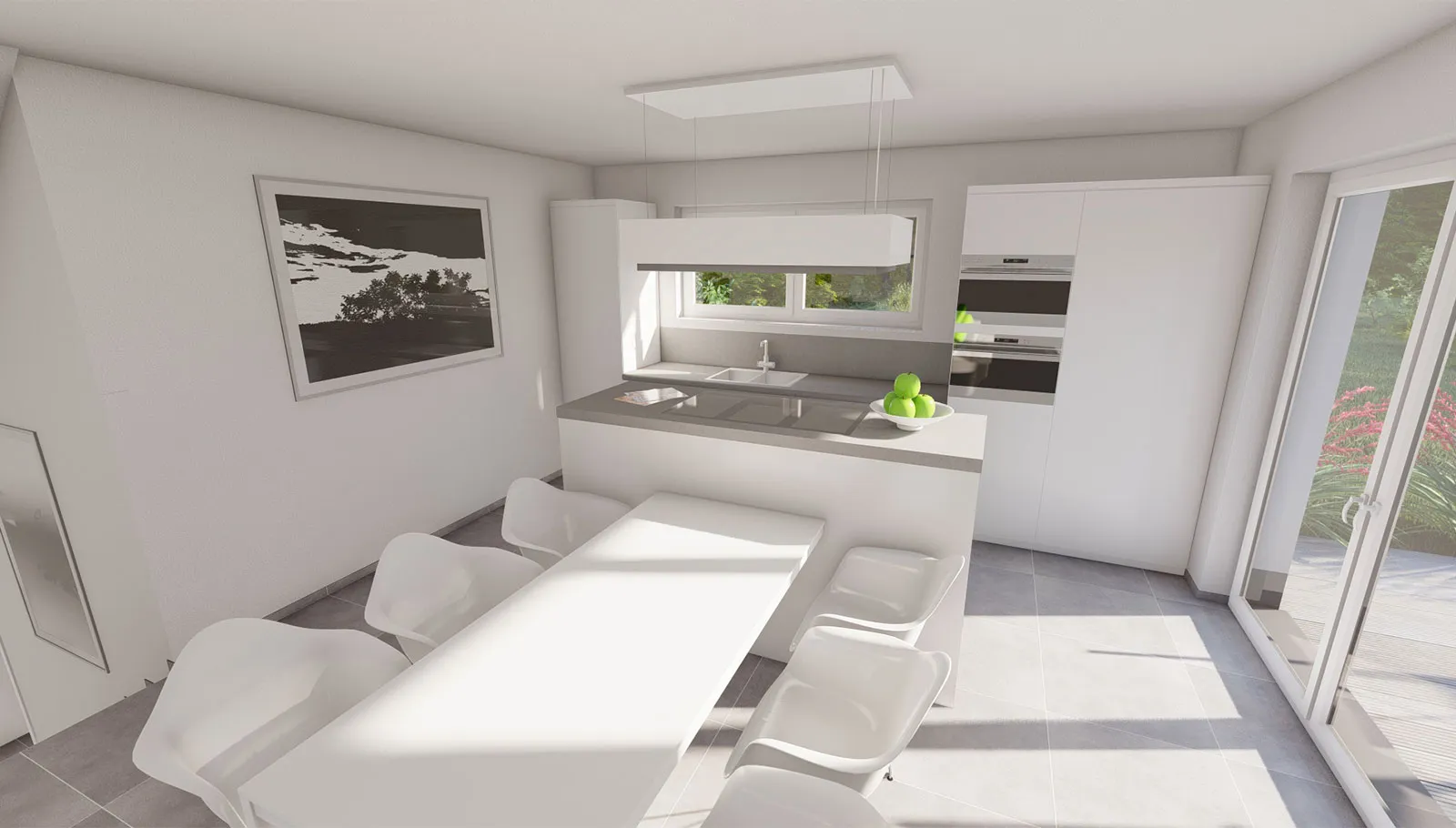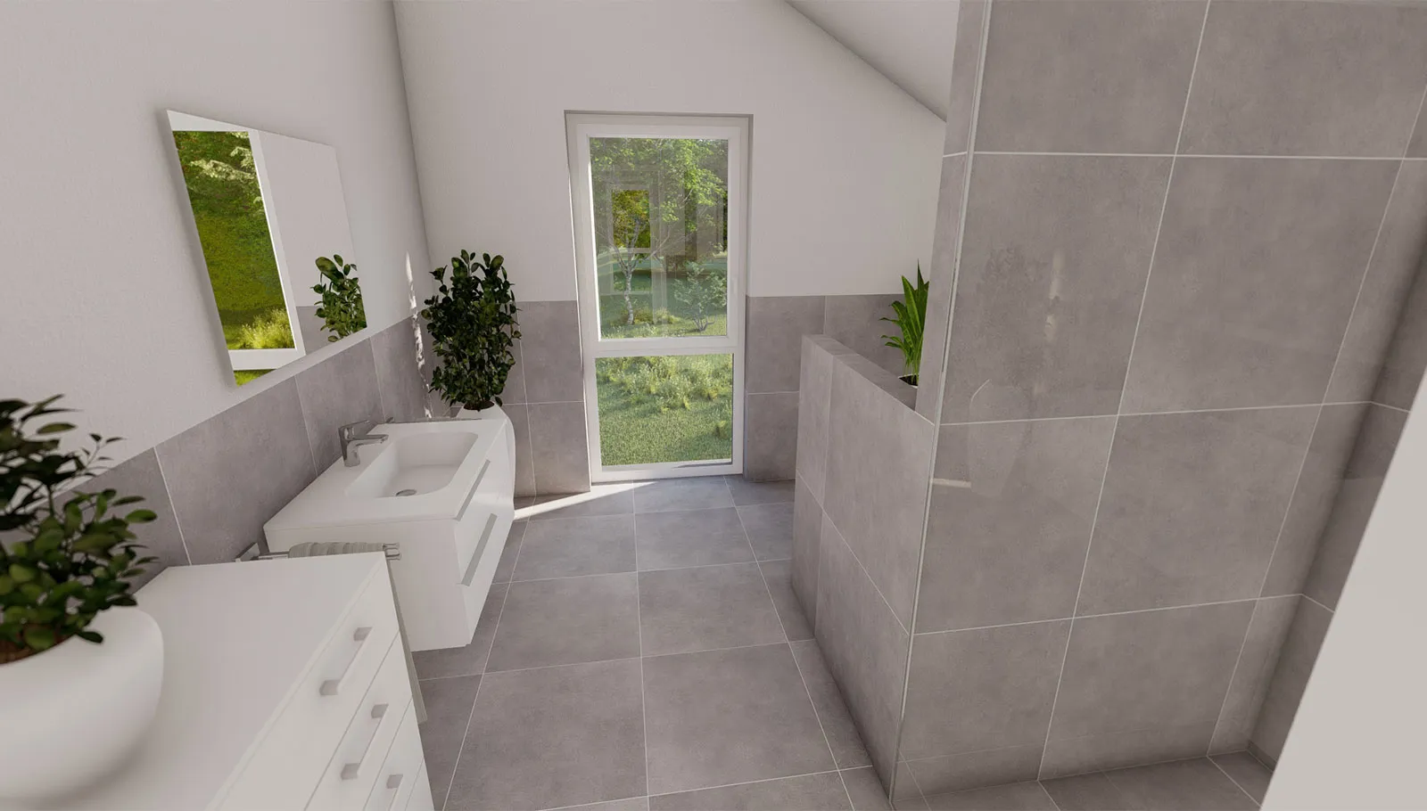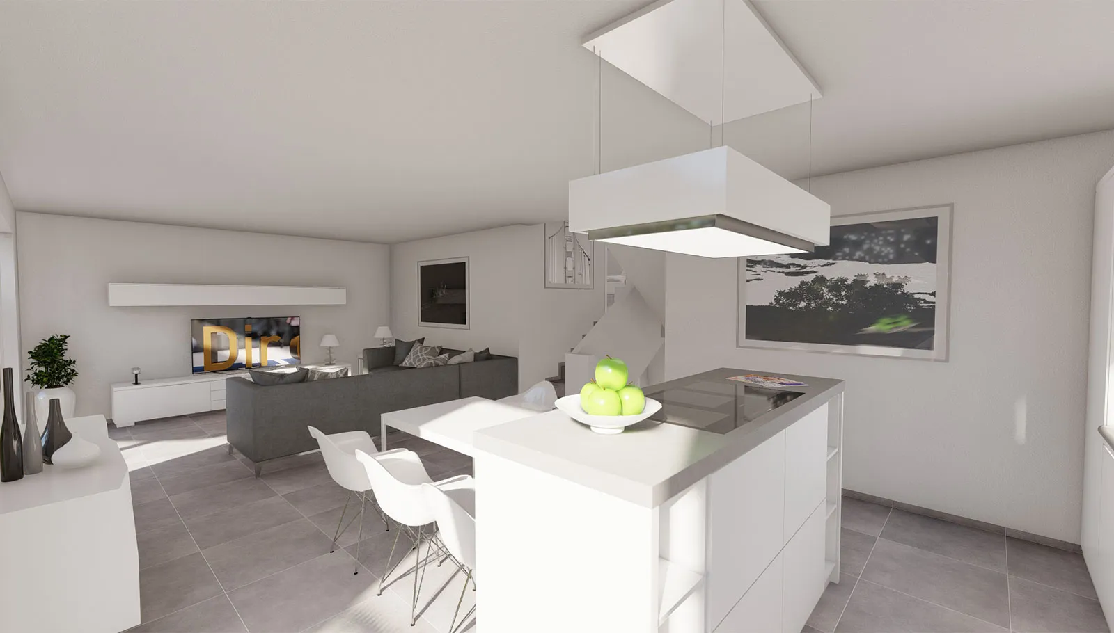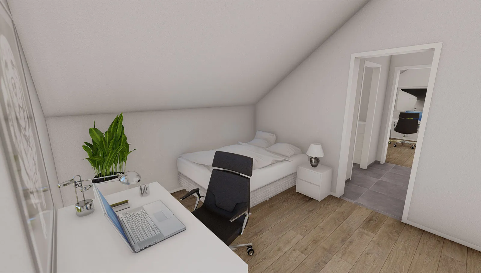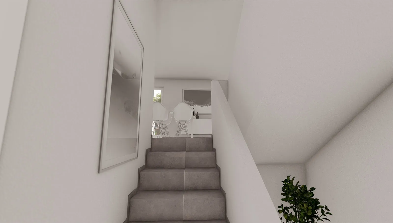 Die Split-Level-Architektur läßt den Wunsch vom Wohnen auf verschiedenen Ebenen wahr werden. Das Kernstück des Hauses bildet die Treppe, wodurch ein separates Treppenhaus entfällt. Der hohe Kniestock, eine optionale Teilunterkellerung und die große Gaube im OG schenken Ihnen genug Raum, Ihre Vorstellungen von den eigenen vier Wänden zu verwirklichen.
