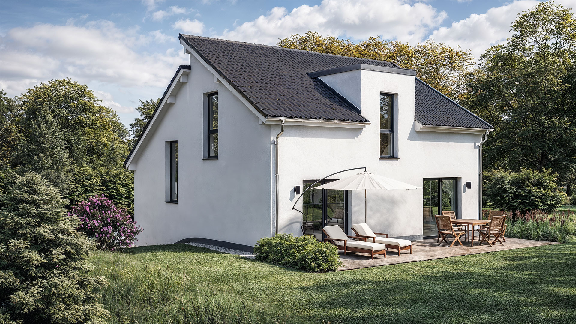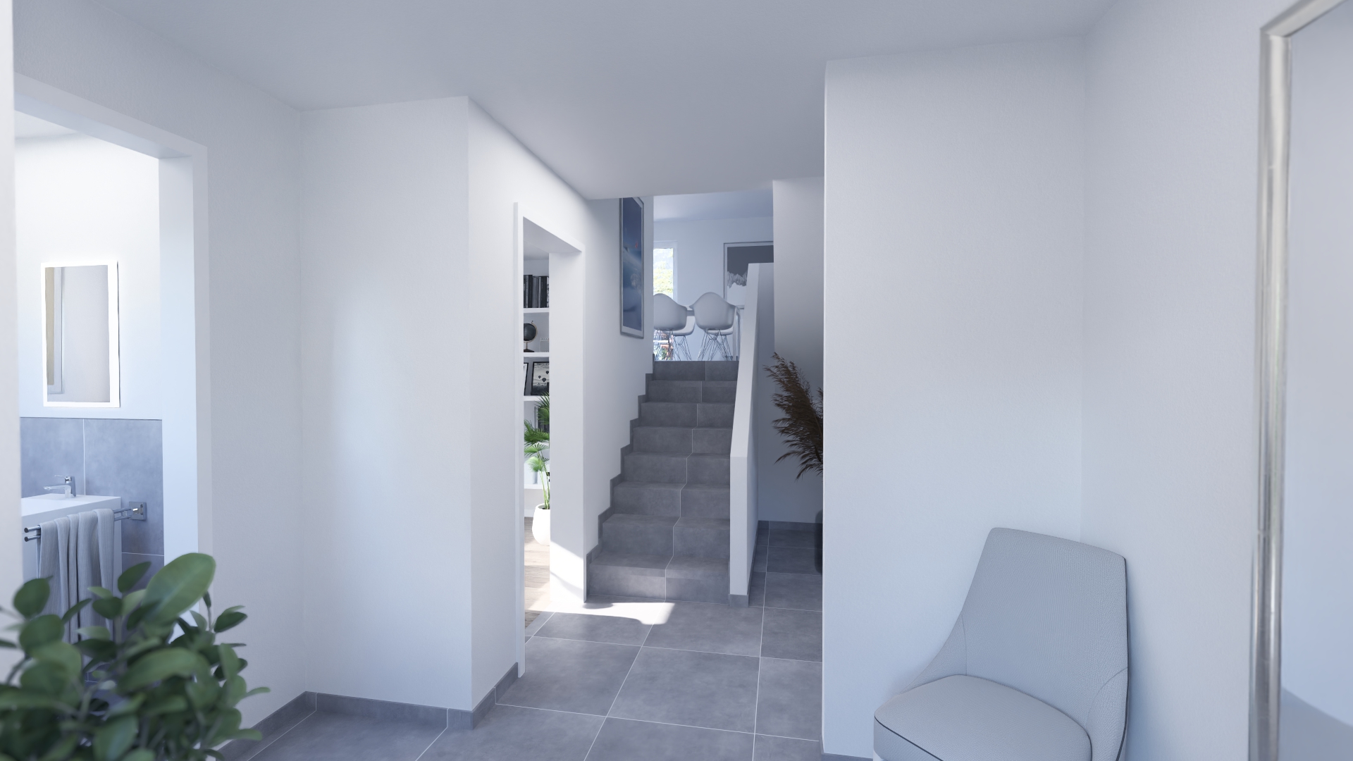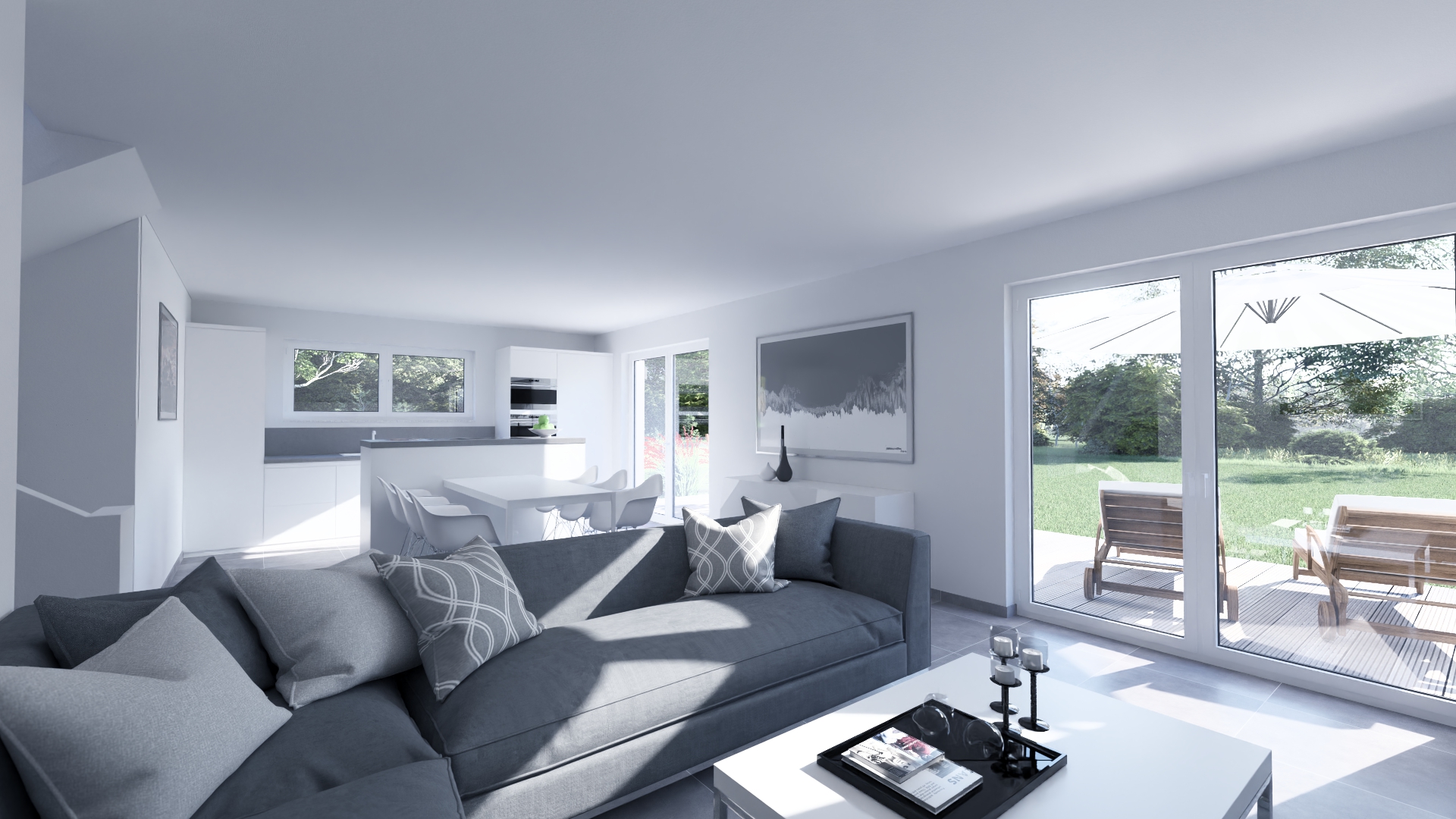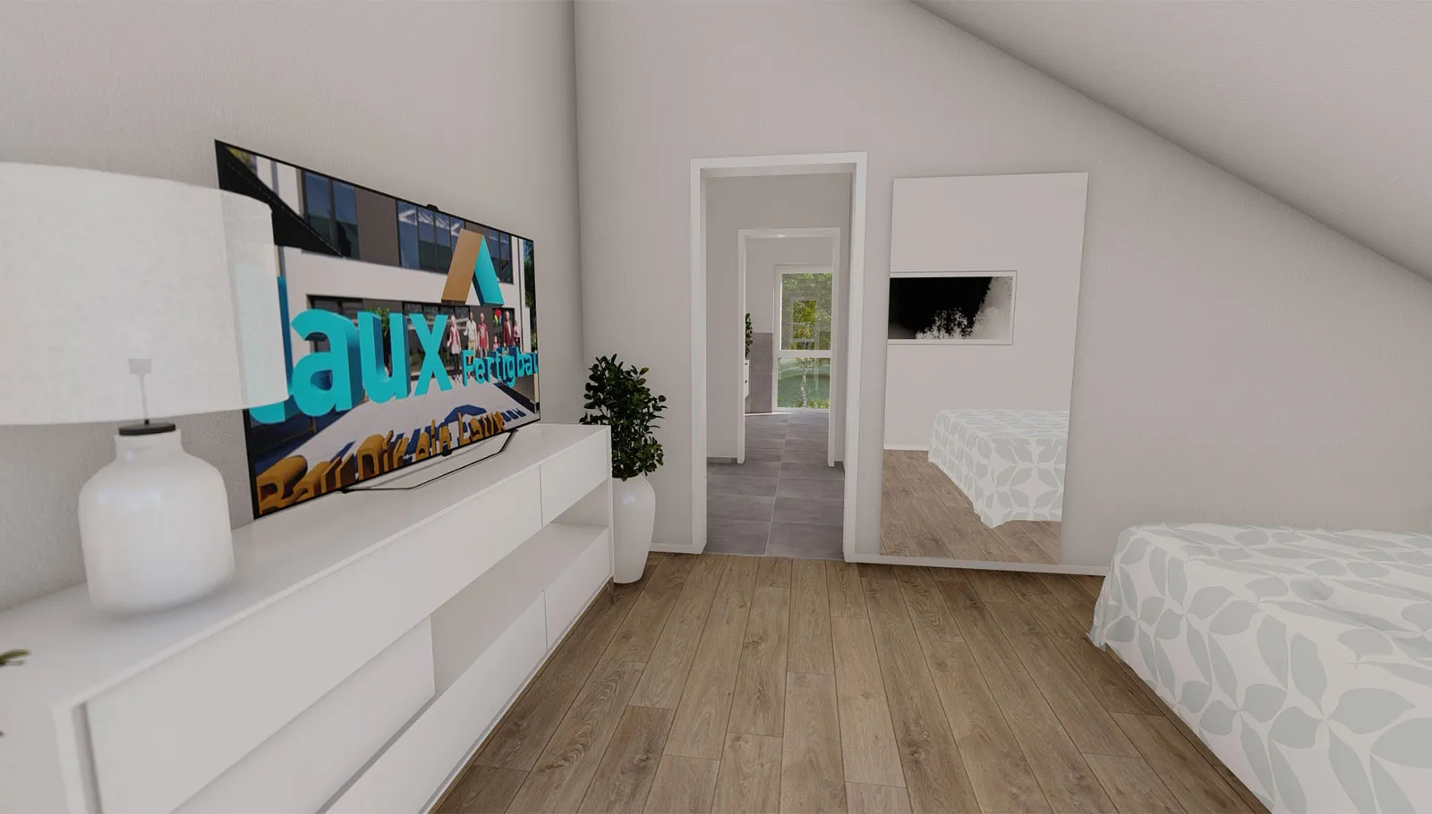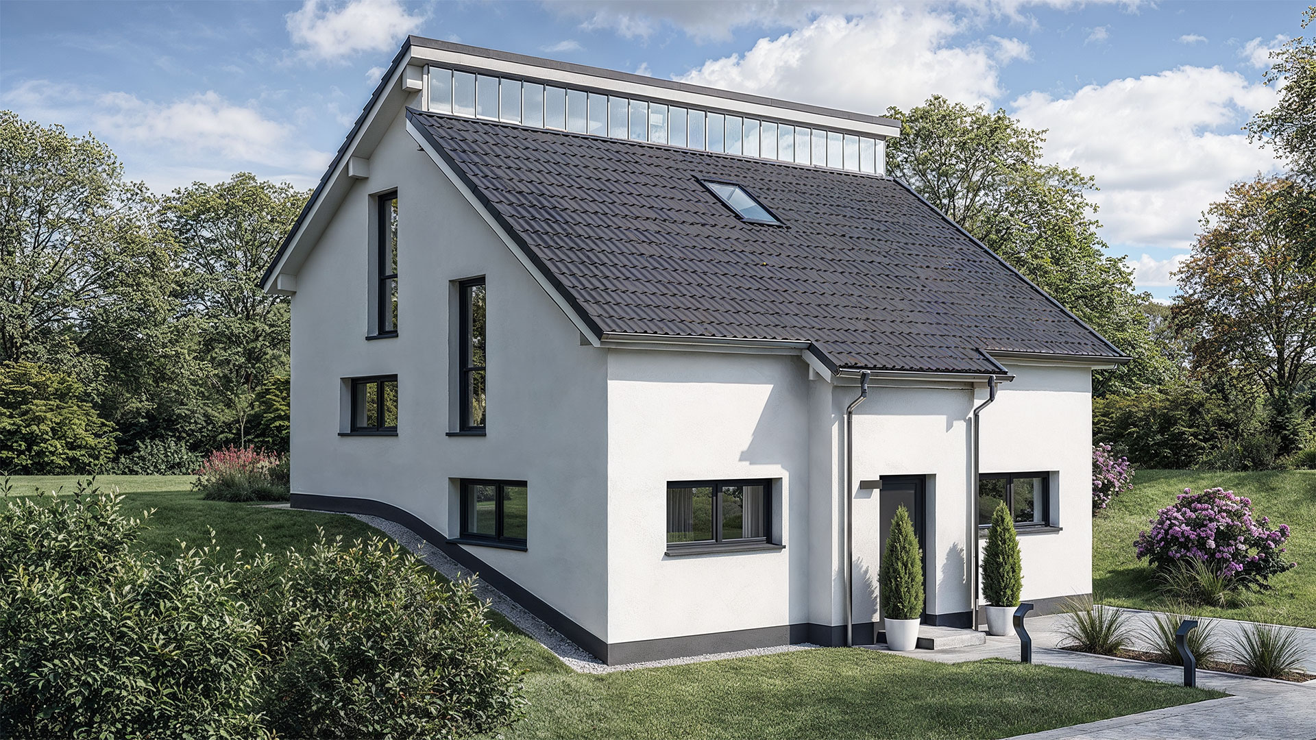 Die Split-Level-Architektur läßt den Wunsch vom Wohnen auf verschiedenen Ebenen wahr werden. Das Kernstück des Hauses bildet die Treppe, wodurch ein separates Treppenhaus entfällt. Der hohe Kniestock, eine optionale Teilunterkellerung und die große Gaube im OG schenken Ihnen genug Raum, Ihre Vorstellungen von den eigenen vier Wänden zu verwirklichen.