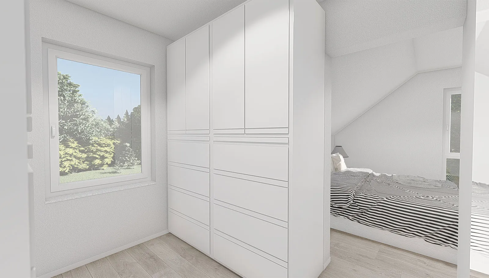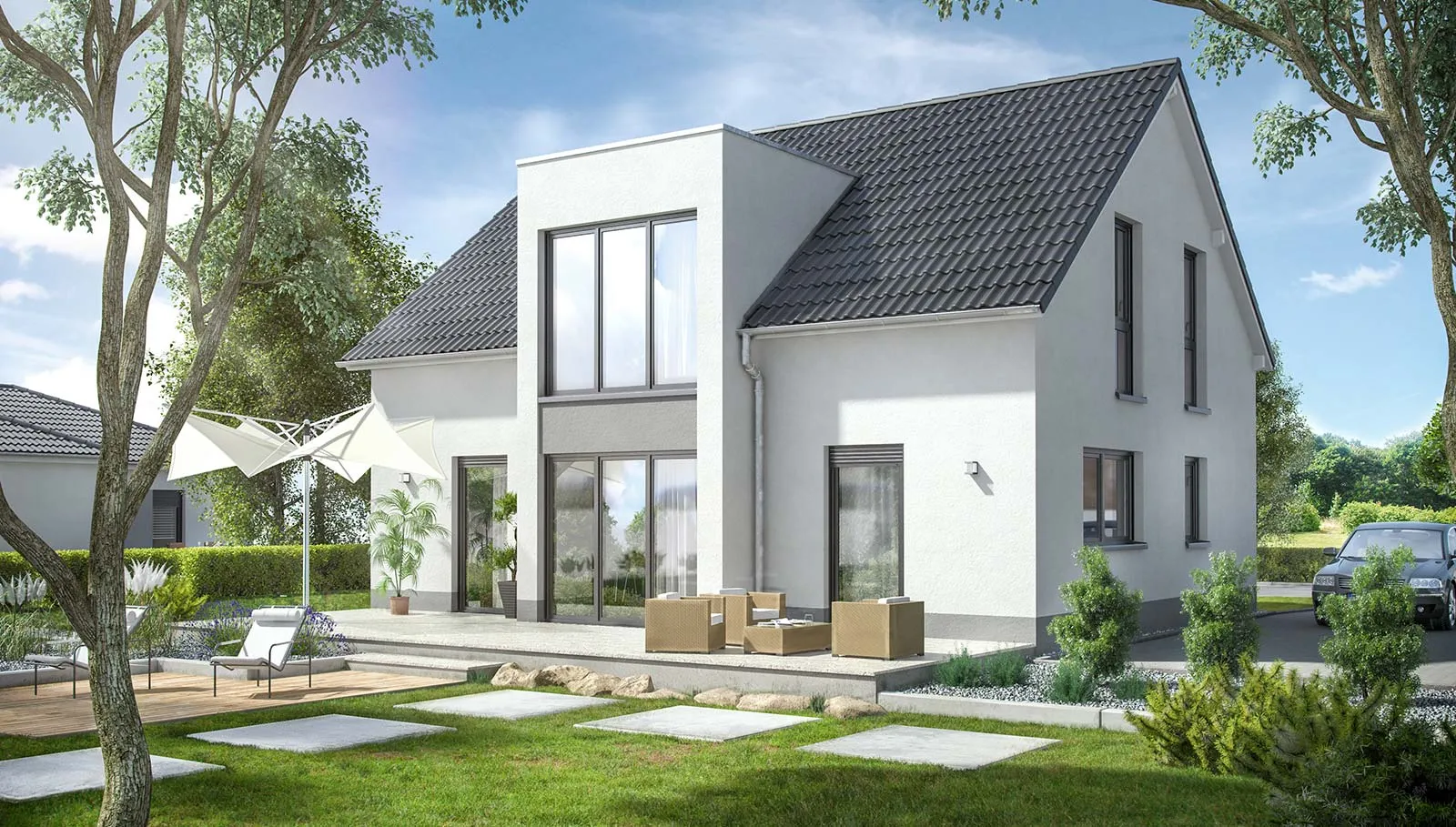 Selten verbindet durchdachte Architektur den modernen Anspruch der Bewohner mit der bewährten traditionellen Bauweise so geschickt wie in unserem Modell „Star“. Die beiden Gauben sind nicht nur optisch ein Highlight, sondern werten Ihr neues Zuhause durch ihre Funktionalität enorm auf. Vier bodentiefe Fenster im Dachgeschoss, sowie die verglaste Galerie sorgen für viel Tageslicht und sonnendurchflutete Räume.