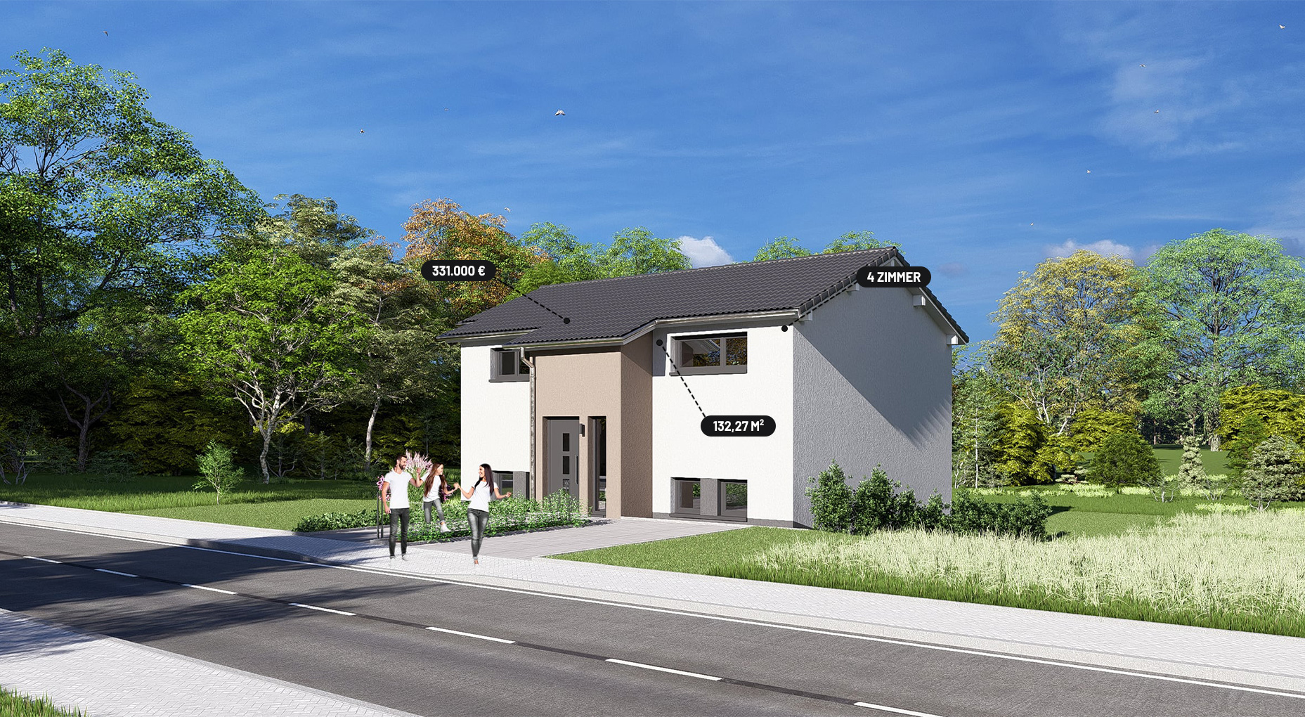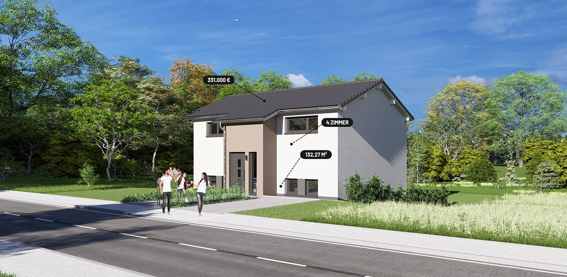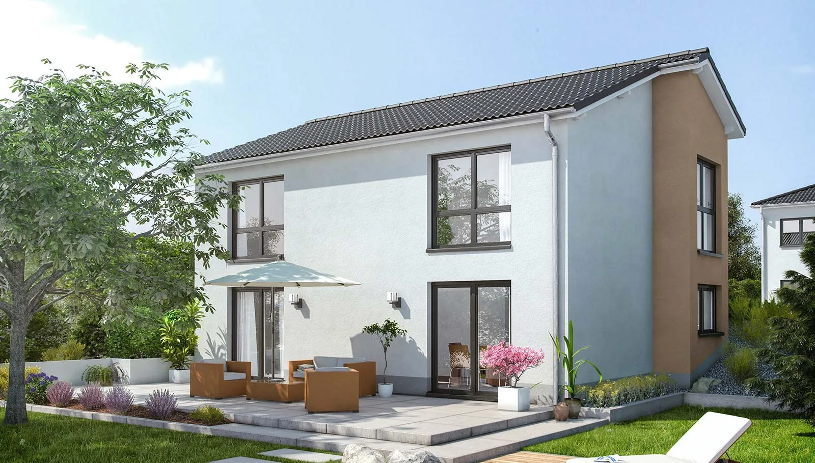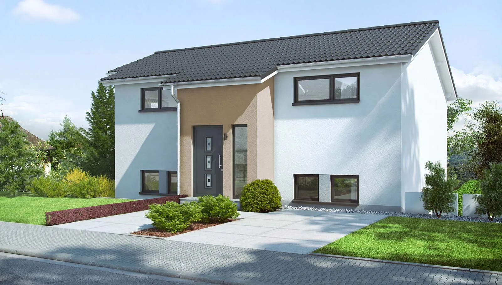 Das „Starline“ besticht durch die interessant angeordneten Formen und Ebenen. Zwei Erker im Seiten- und Eingangsbereich lockern das äußere Erscheinungsbild auf.
