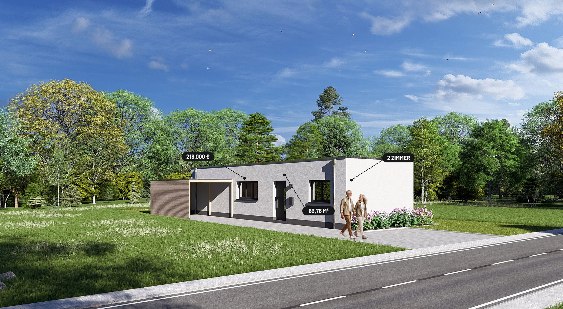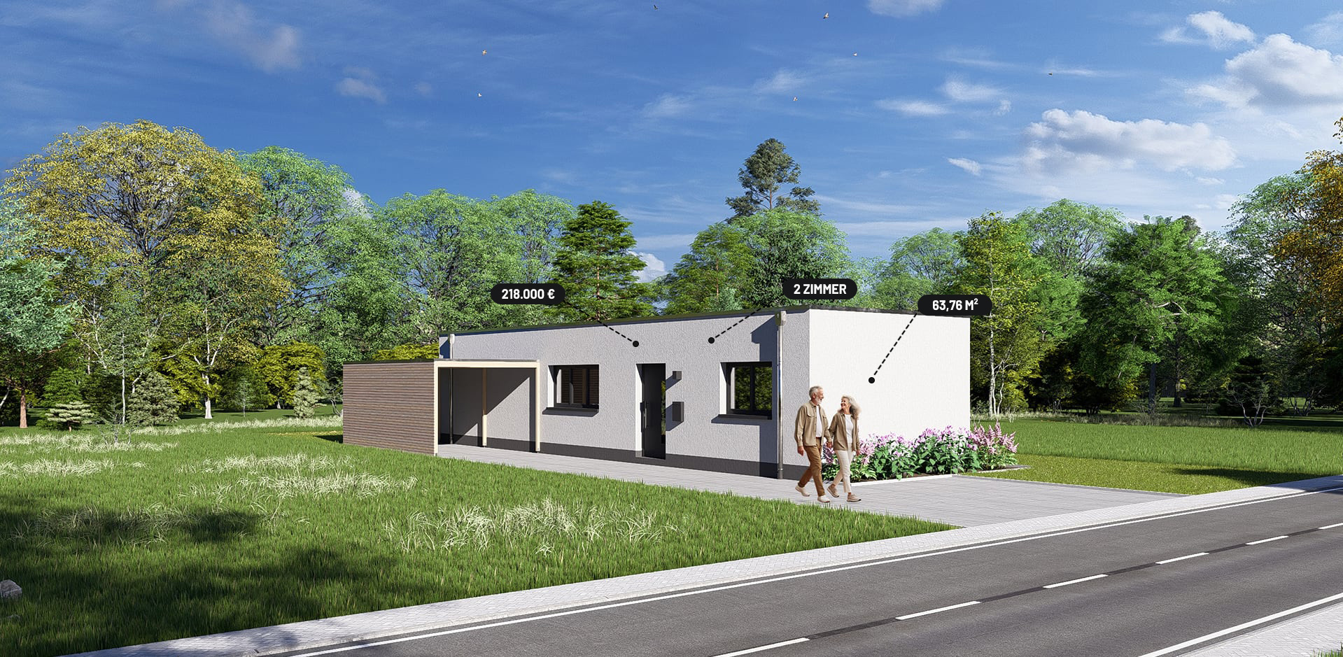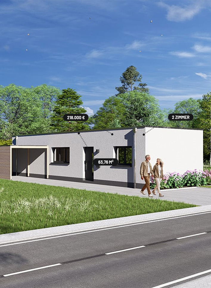 „Tiny“ ist unser kleinstes Traumlaux mit der wohl größten Flexibilität und den geringsten Kosten. Massiv gebaut auf der Fläche eines Apartments. So schaffen Sie – freistehend oder als nachträglicher Anbau – zusätzlichen Wohnraum auf knapp 64 Quadratmetern. Und das bei extrem geringen Betriebskosten. Warum ein Gästezimmer, wenn es auch ein vollwertiges Gästehaus sein kann? Planen Sie für Ihr Alter, die Kinder oder Feriengäste. In massiver Bauweise und bekannter Laux-Qualität, bequem auf einer Wohnebene. Als zusätzliche Büro- und Praxisfläche oder flexibles Homeoffice.
